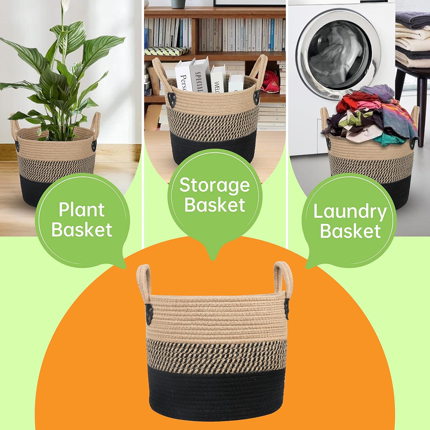 • 【 Multiuse for Different Scenes】This neutral woven basket is also great to use as a storage bin for clothes, beddings, books, office supplies, fruit, vegetables, laundry, toy organizer, etc.