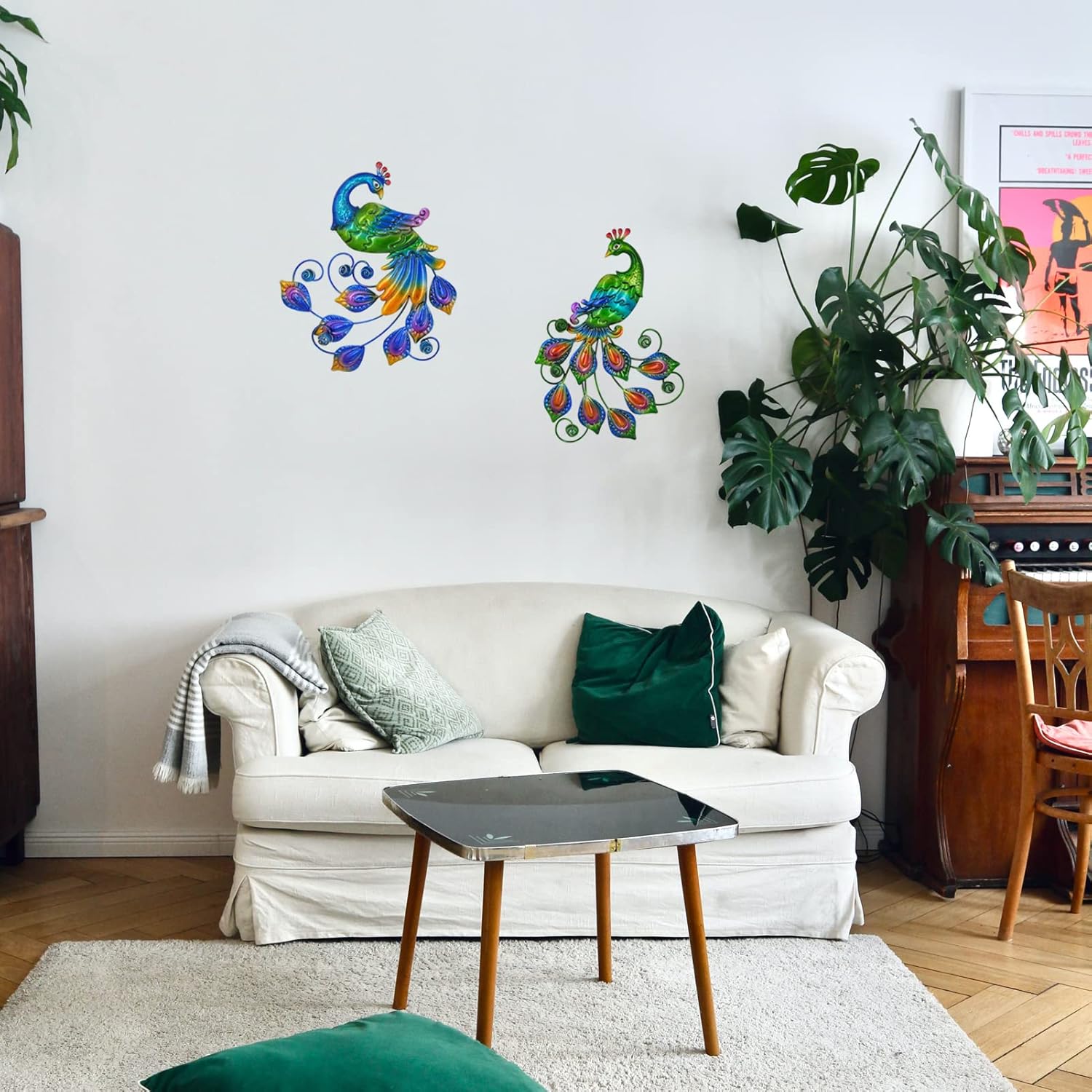 • [Peacock wall decor] 2 metal peacock outdoor decor, beautiful shape, gorgeous colors and exquisite craftsmanship, to create a natural and happy atmosphere for the decoration space.