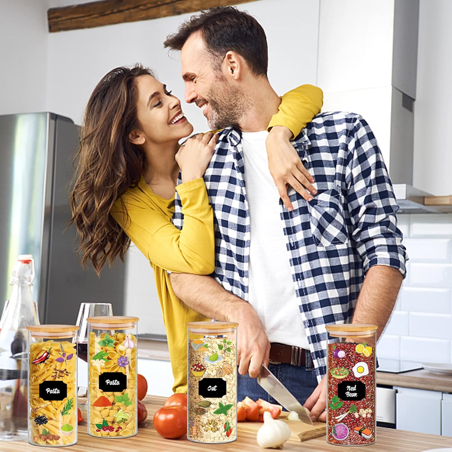 • 【Effortless Organization】Stay perfectly organized with 58 colorful labels included with these kitchen jars. The 【uniform airtight glass pantry storage containers set with bamboo lids stack neatly to maximize space - ideal for small kitchens storing flour, nuts or pet treats.