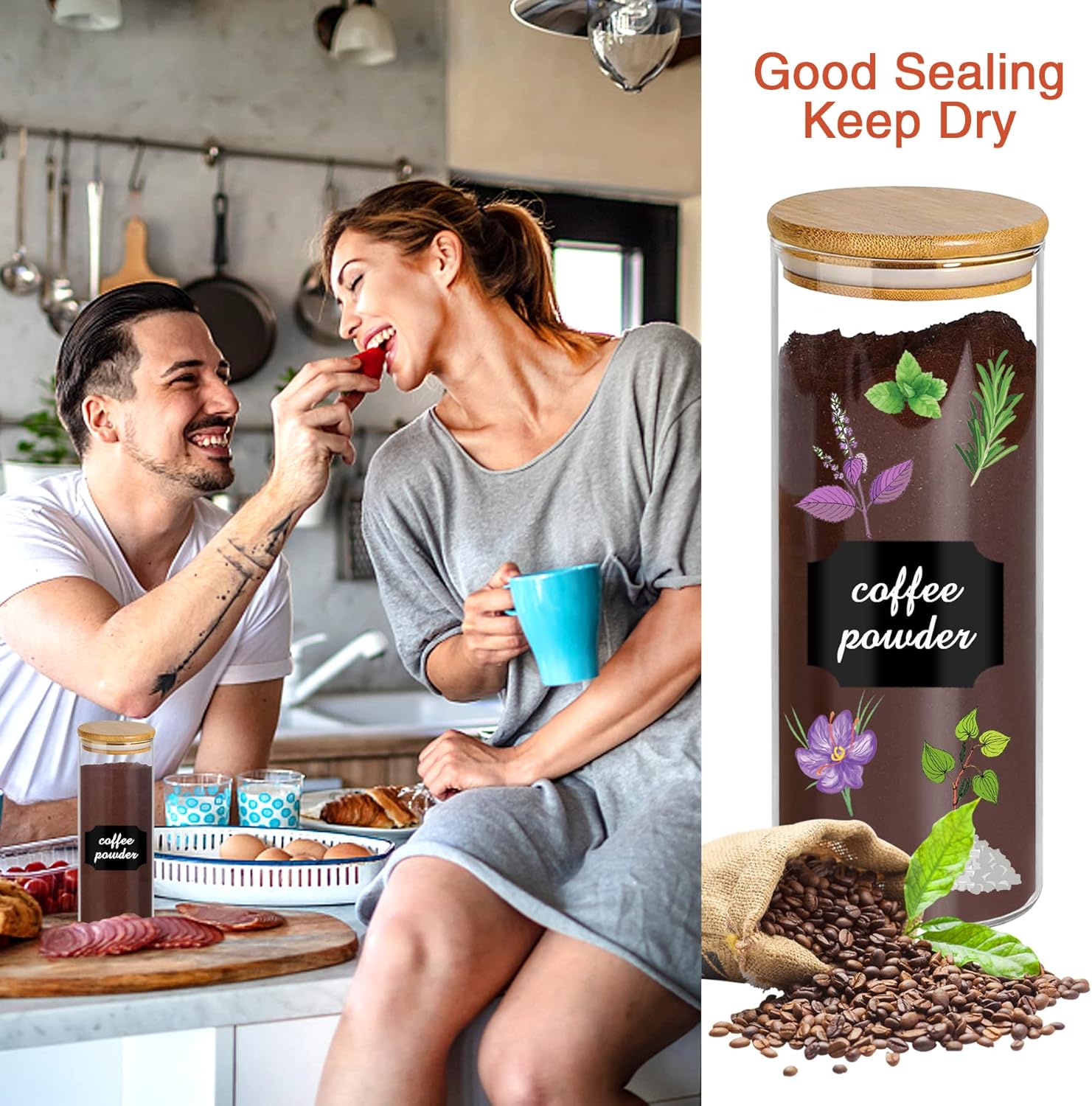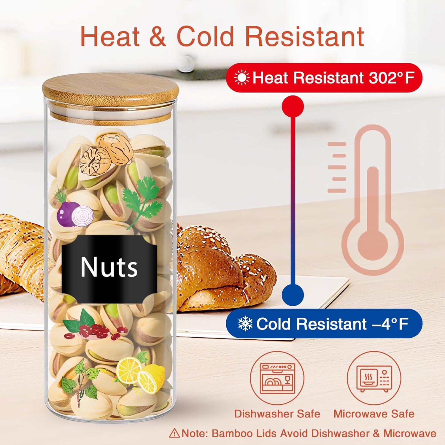 • 【Effortless Organization】Stay perfectly organized with 58 colorful labels included with these kitchen jars. The uniform airtight glass pantry storage containers set with bamboo lids stack neatly to maximize space - ideal for small kitchens storing flour, nuts or pet treats.