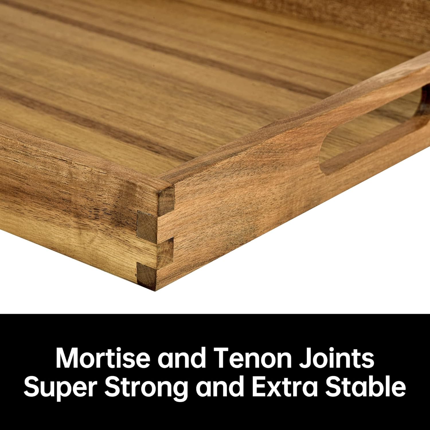 • SUPERIOR QUAKITY: Meticulously constructed using only the finest quality acacia wood and featuring excellent mortise & tenon joints, our wood trays for serving are safe, smooth, sturdy, eco-friendly, and durable enough to withstand the wear and tear of everyday use for years to come without losing their aesthetic appeal!