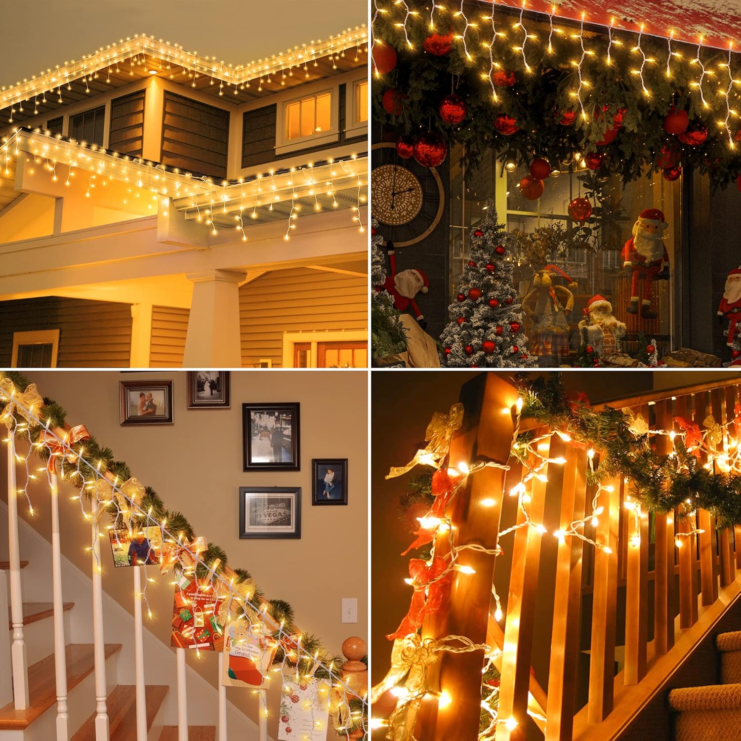 • ⛄*UL Certified & Safe*-Made with high quality copper and plastic,built-in 3A fuse.110V Voltage,strictly tested and meets the US requirements of icicle Christmas lights,UL safety standards to ensure & maximize the safety.Economical and Durable!