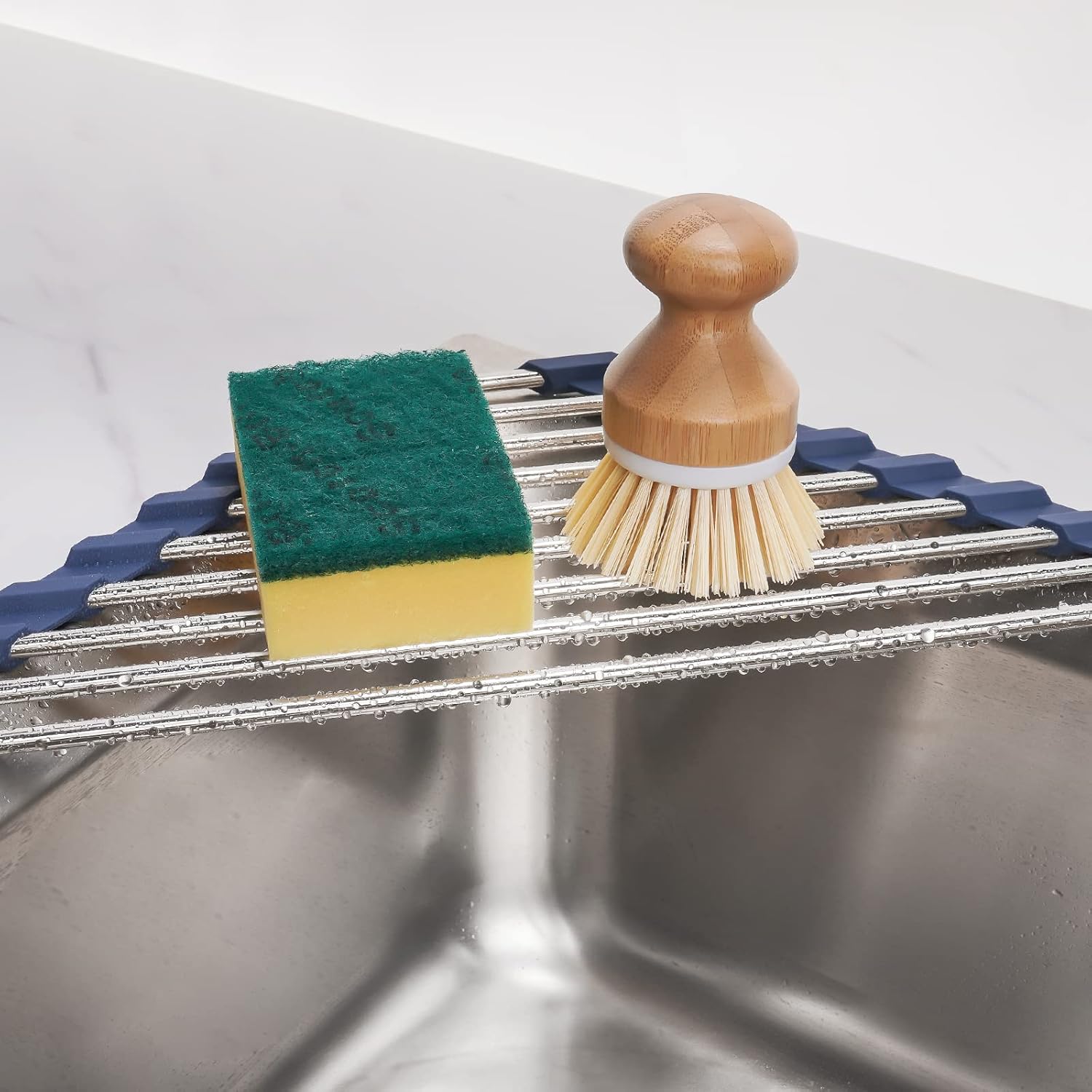 • ✔️【Space Saving】This over-sink dish drying rack takes up little space and the foldable design allows you to quickly roll it up for easy storage and make your kitchen look less cluttered. It is the best cutlery drainer for your kitchen and can replace bulky dish racks and colanders. Suitable for most standard sinks and drawers. Please kindly check your sink size before purchasing.