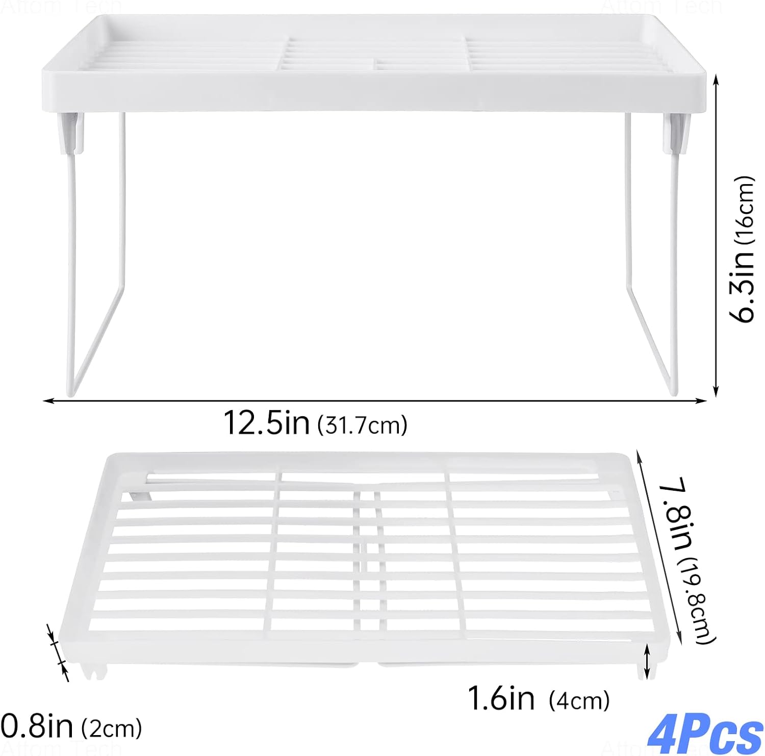 • ✔️【4PCS Value Pack】This set contains four shelves with a stackable and expandable design that is easy to assemble and can double or even triple your storage space to accommodate more items for various needs.