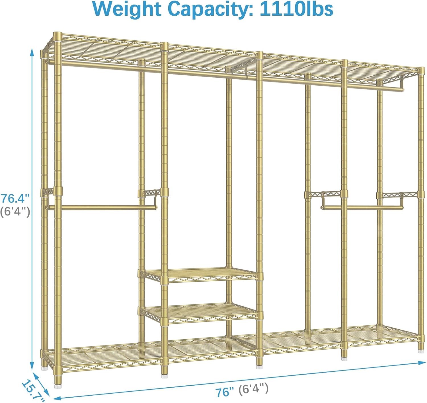 VIPEK V40 Wire Garment Rack Heavy Duty Clothes Racks for Hanging Clothes, Multi-Functional Metal Clothing Racks Bedroom Freestanding Wardrobe Closet Rack, 76" Lx15.7 Wx76.4 H, Max Load 1110lbs, Gold