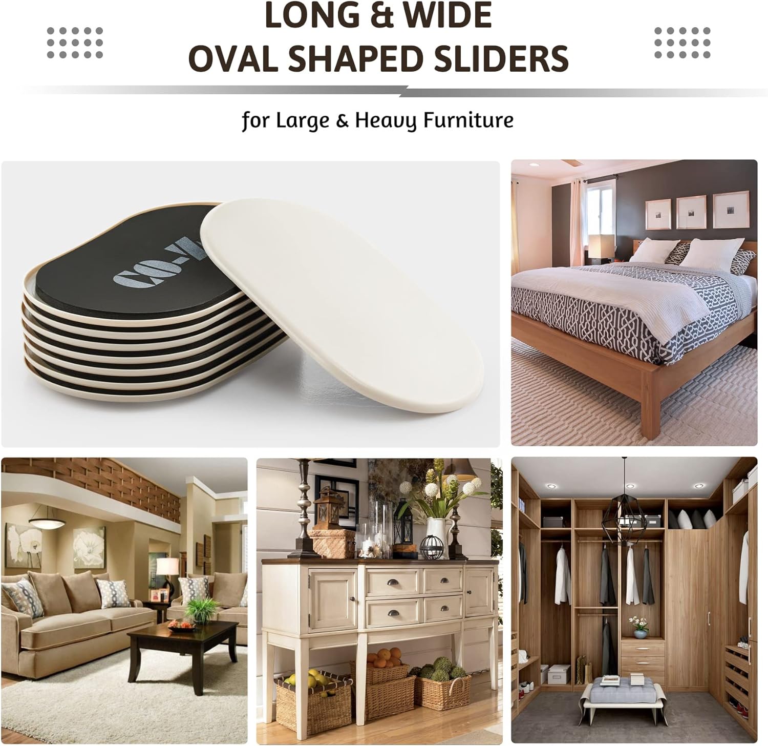 • 8-PIECE MOVING KIT: CO-Z's oval furniture slider kit supports up to 110 pounds, helping you easily move large heavy furniture across your flooring; measuring 5.7x9.4 in., our pads work with most furniture legs, including chairs, beds, cabinets, & more