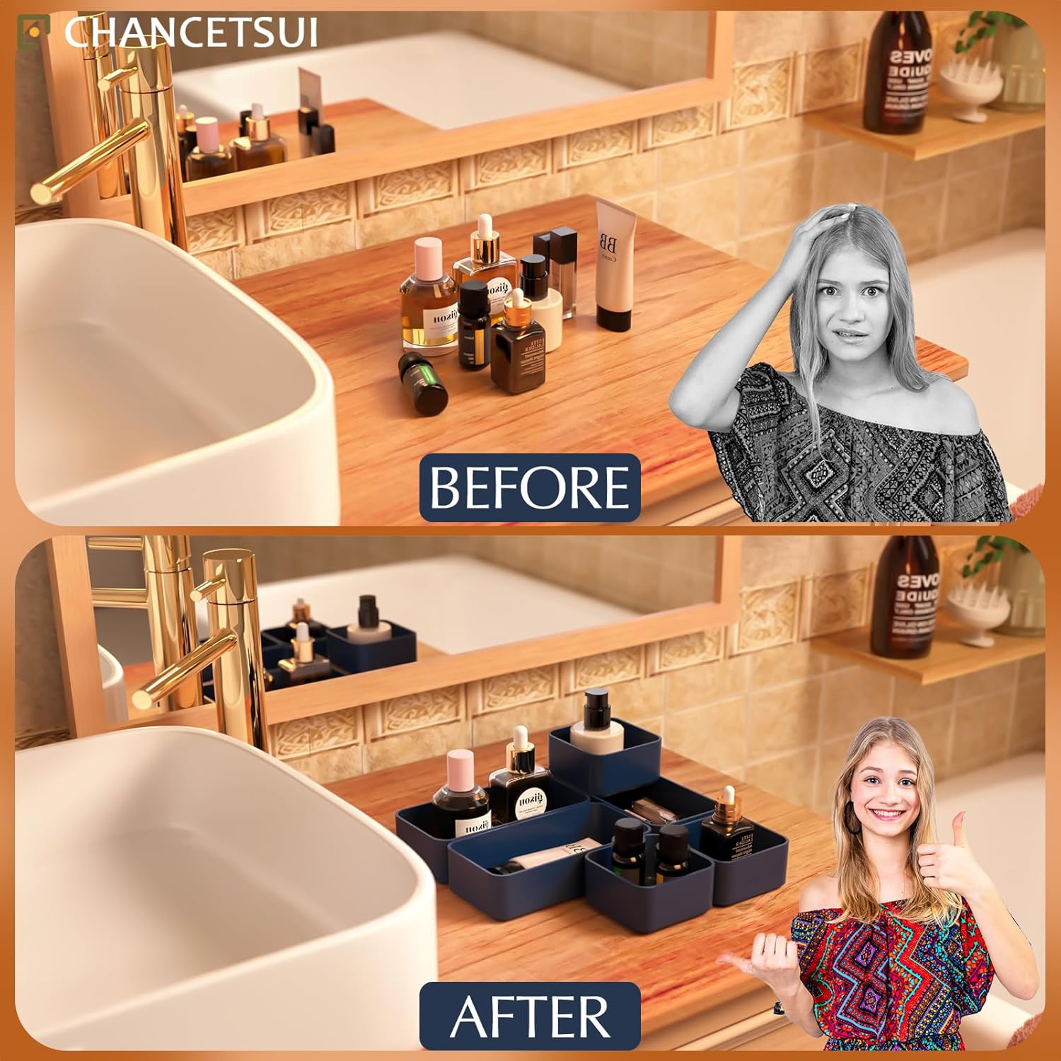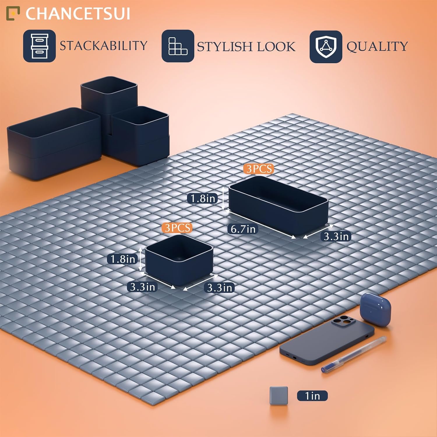 • 【6 Pcs Set 】This multifunctional organising trays comes in a 6 pcs set. Package includes : 3.35 x 3.35 x 1.77'' (3 pcs), 3.35 x 6.6 x 1.77'' (3 pcs). You can flexibly use our storage organizer for house organization and storage according to your needs.