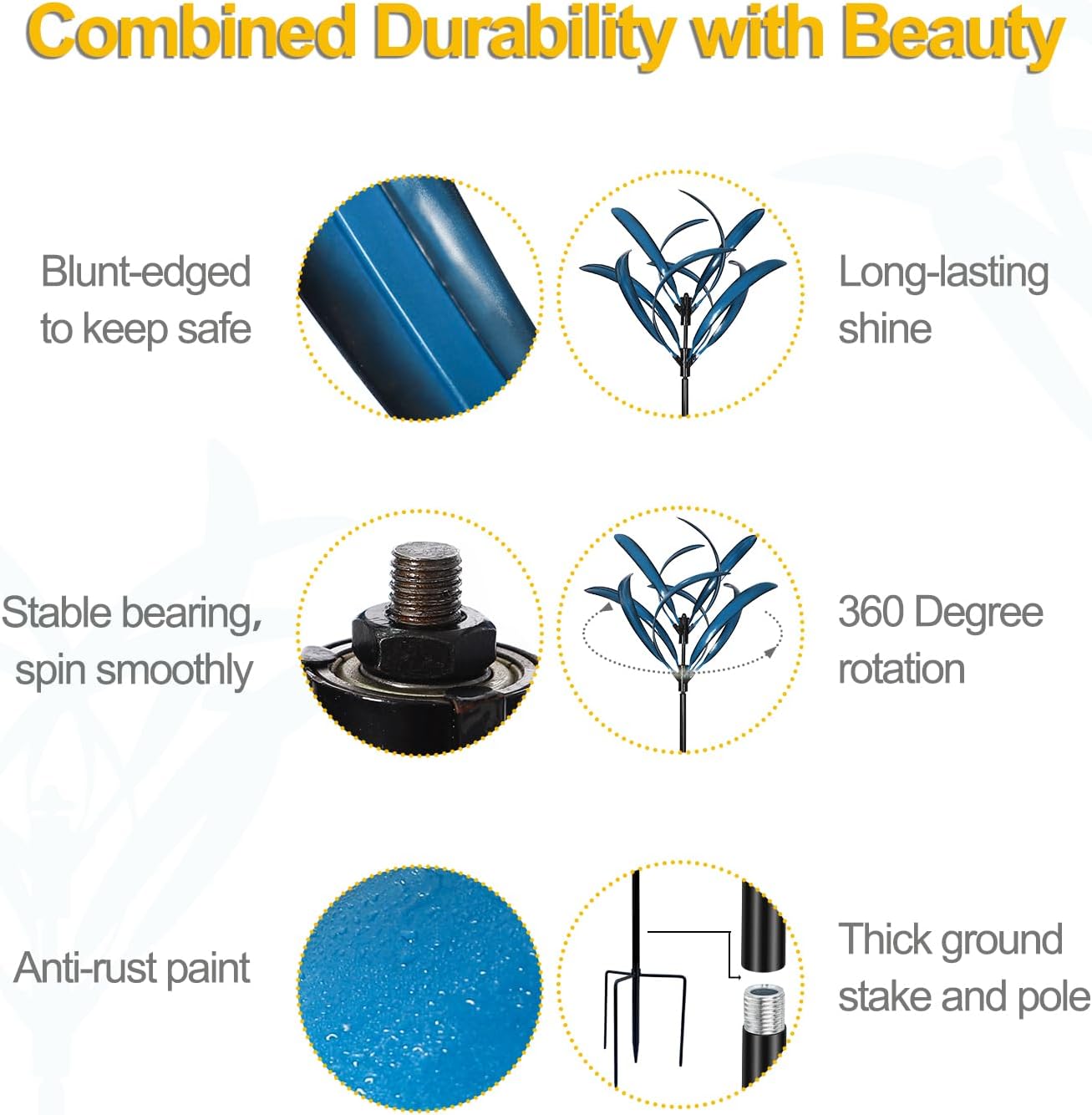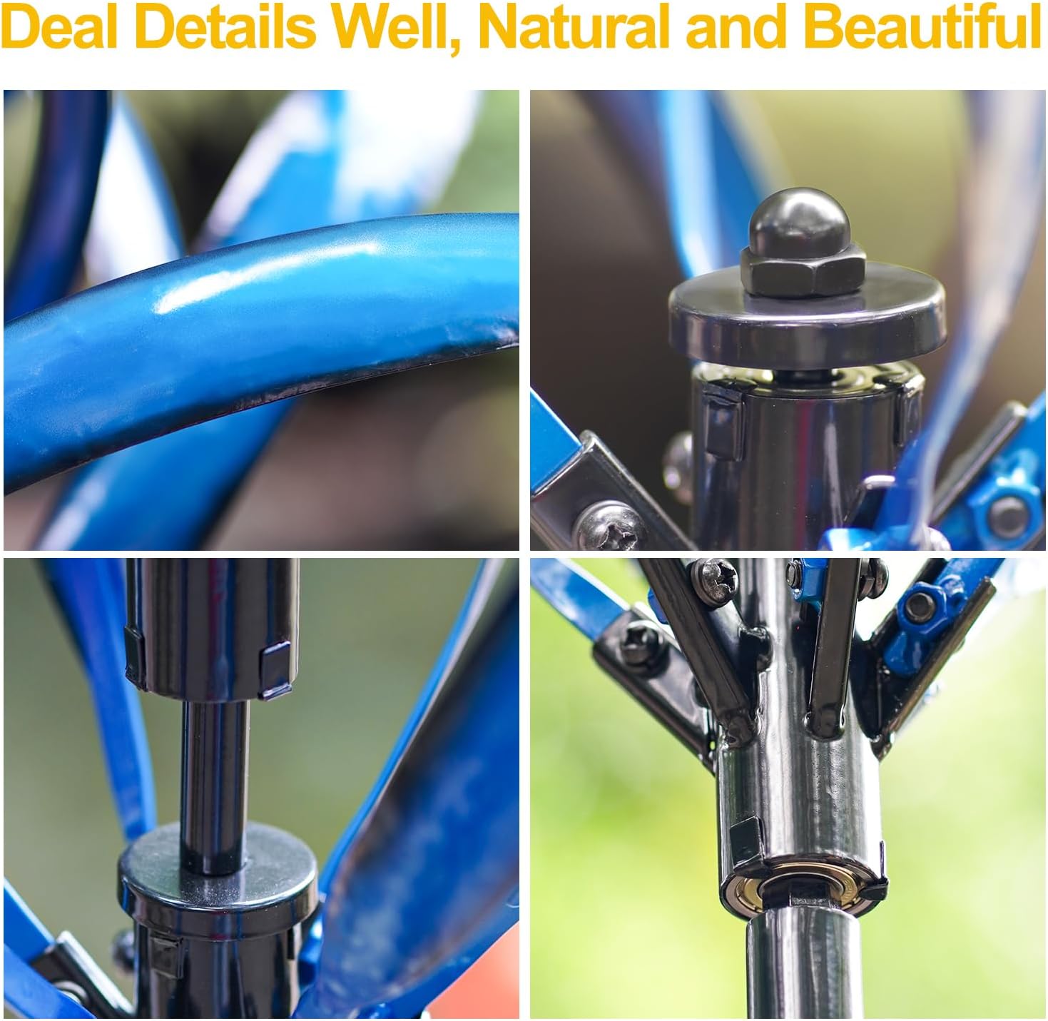 • 【Withstand All Weather】Stable pronged base stake design to keep the outdoor large wind spinner balanced and firmly placed. Hand-painted and UV treated to resist fading, so it is long-lasting and will perfom well as a garden decoration.