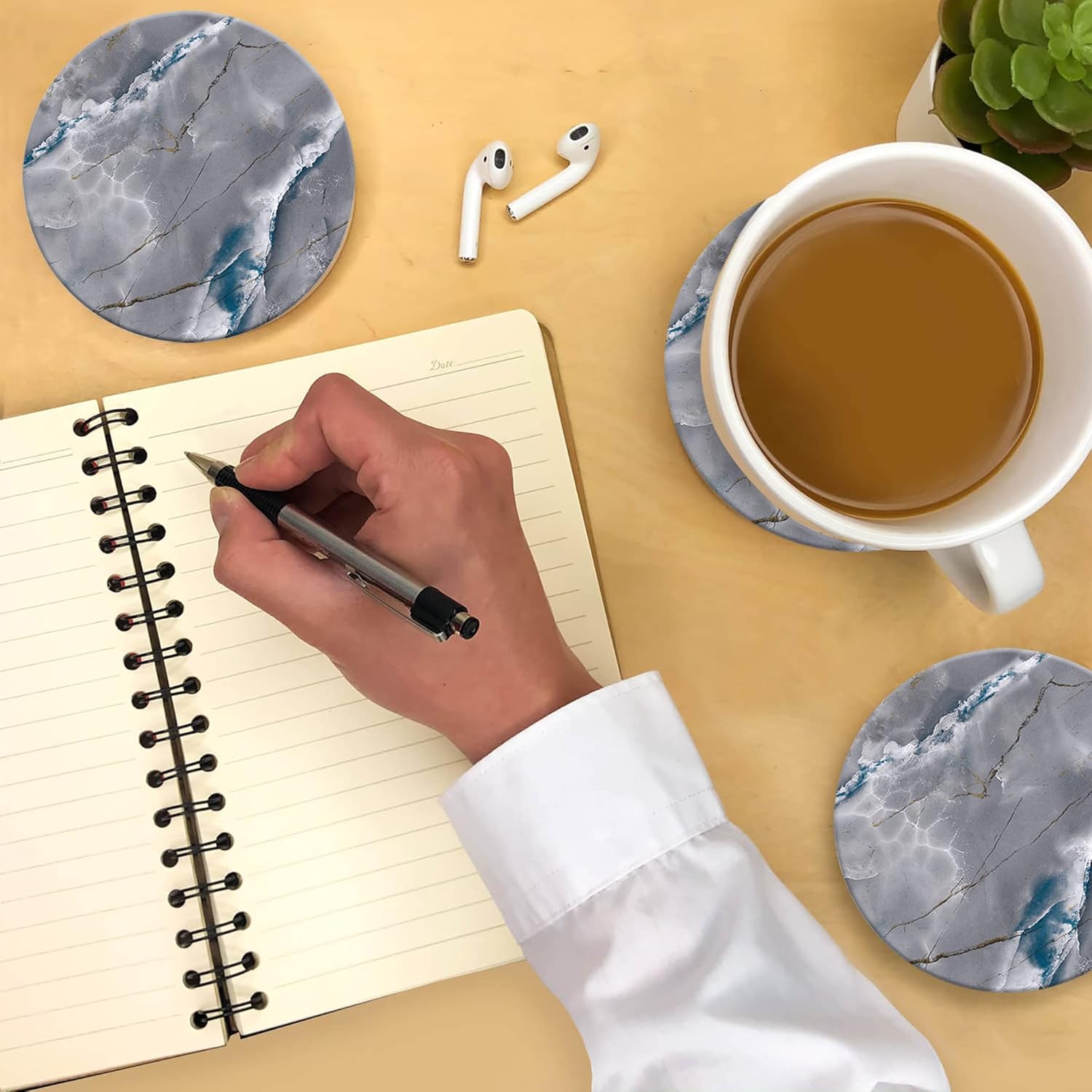 Emerson Coasters for Drinks Absorbent – Natural Stone Drink Coasters Set with Holder, Coasters for Coffee Table, Wooden Tabletop Protection Marble Style – 100% Heavy Duty Set of 6 (Graphite)