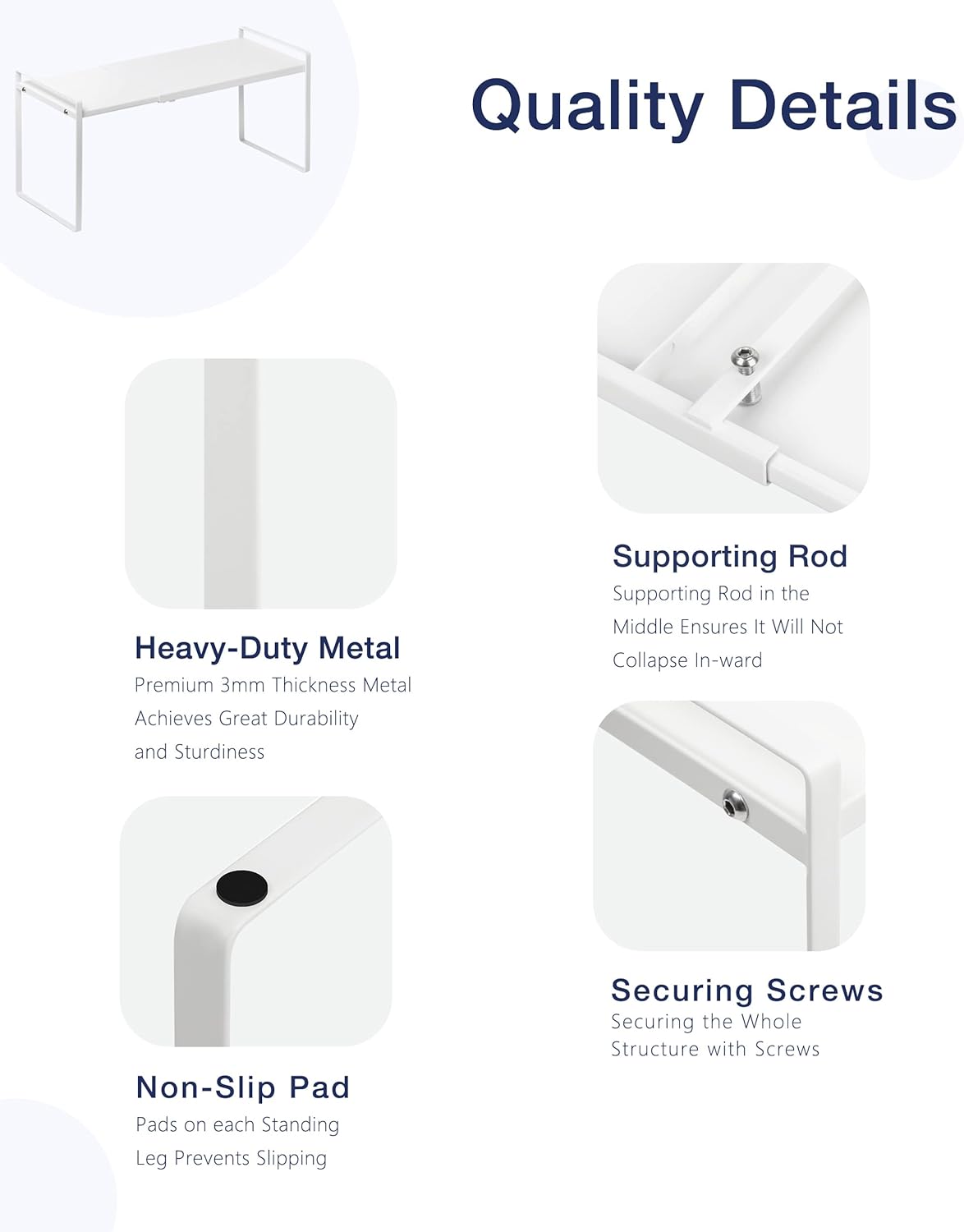 Nxconsu Expandable Cabinet Shelf Organizer Riser for Kitchen Pantry Cupboard Under Sink Countertop Home Storage Organization Rack Space Saver Freestanding Heavy Duty Nonslip Stackable White