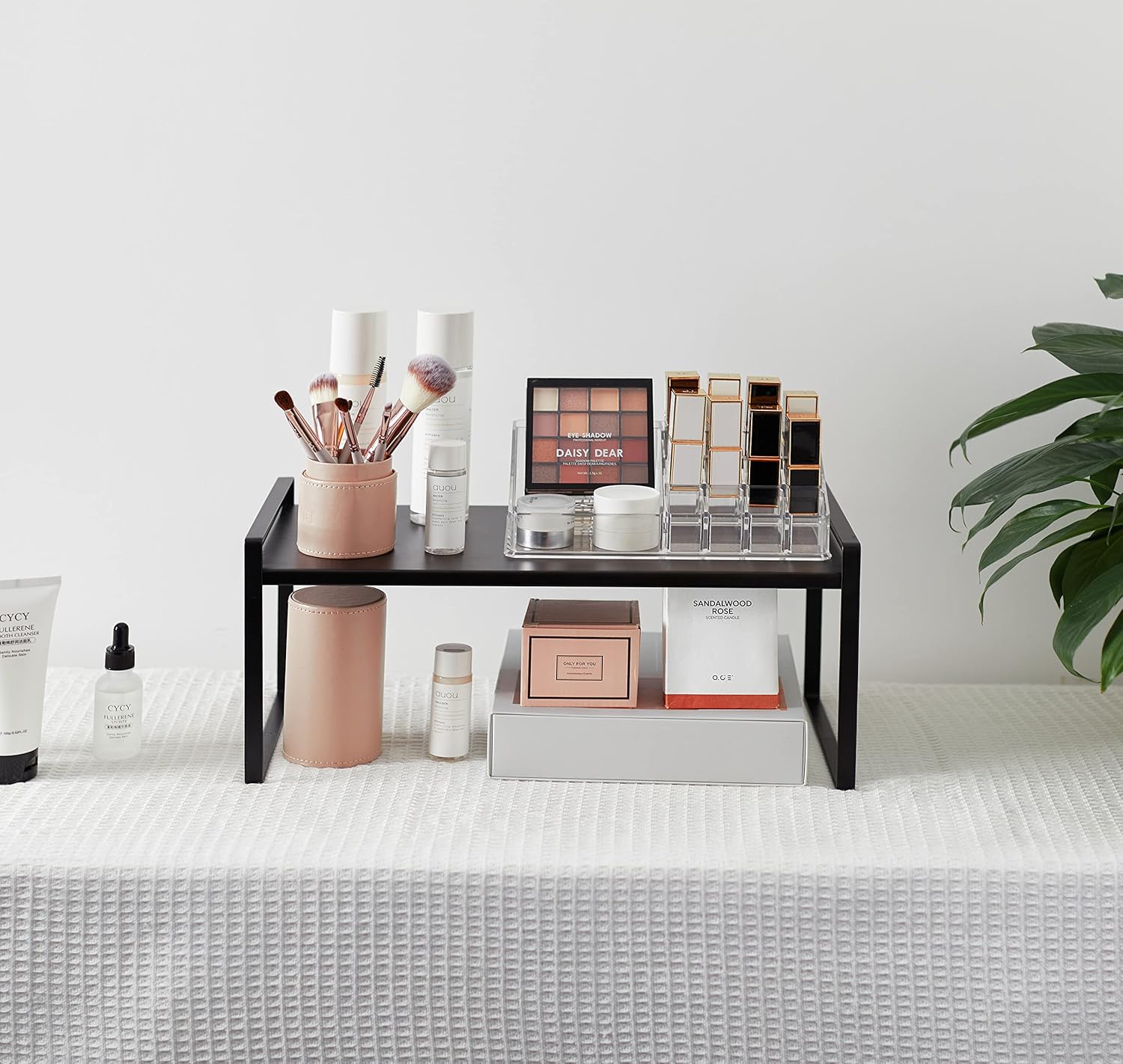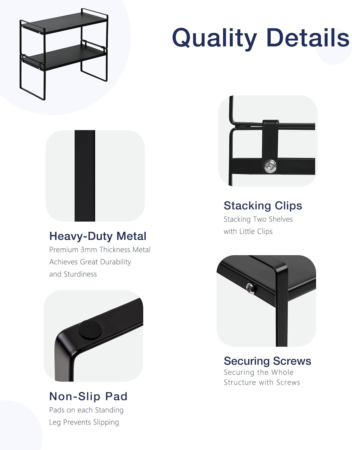 • CHARACTER DESIGN: This cabinet shelf can create plenty of space for your household items such as cups, pots, bottles, bowls, cookware, or canned foods without dominating space in your cabinet. This stylish cabinet shelf fits neatly on the countertop to keep your essentials organized and easily accessible.