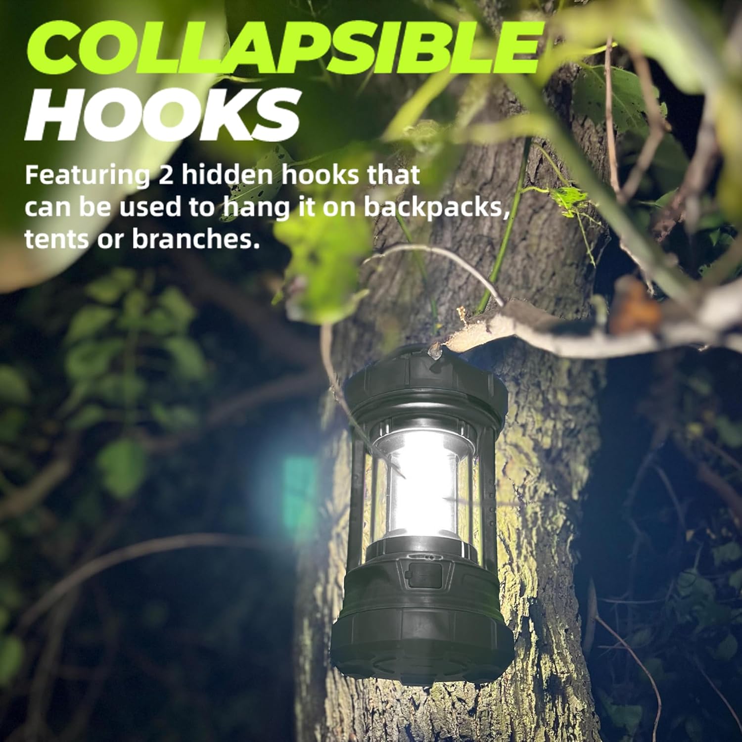 • Collapsible Hooks & Portable Design: Weighing just 1.21lb and measuring a compact 7.09 x 4.13 x 4.13 in, camping lights epitomize portability. Designed for adventurers who prioritize lightweight gear, it slips effortlessly into any backpack, ensuring you're never burdened by bulky gear. Additionally, the lanterns for tent camping feature two hidden hooks that can be used to hang it on backpacks, tents or branches, allowing you to be hands-free during cold weather or any outdoor activity.