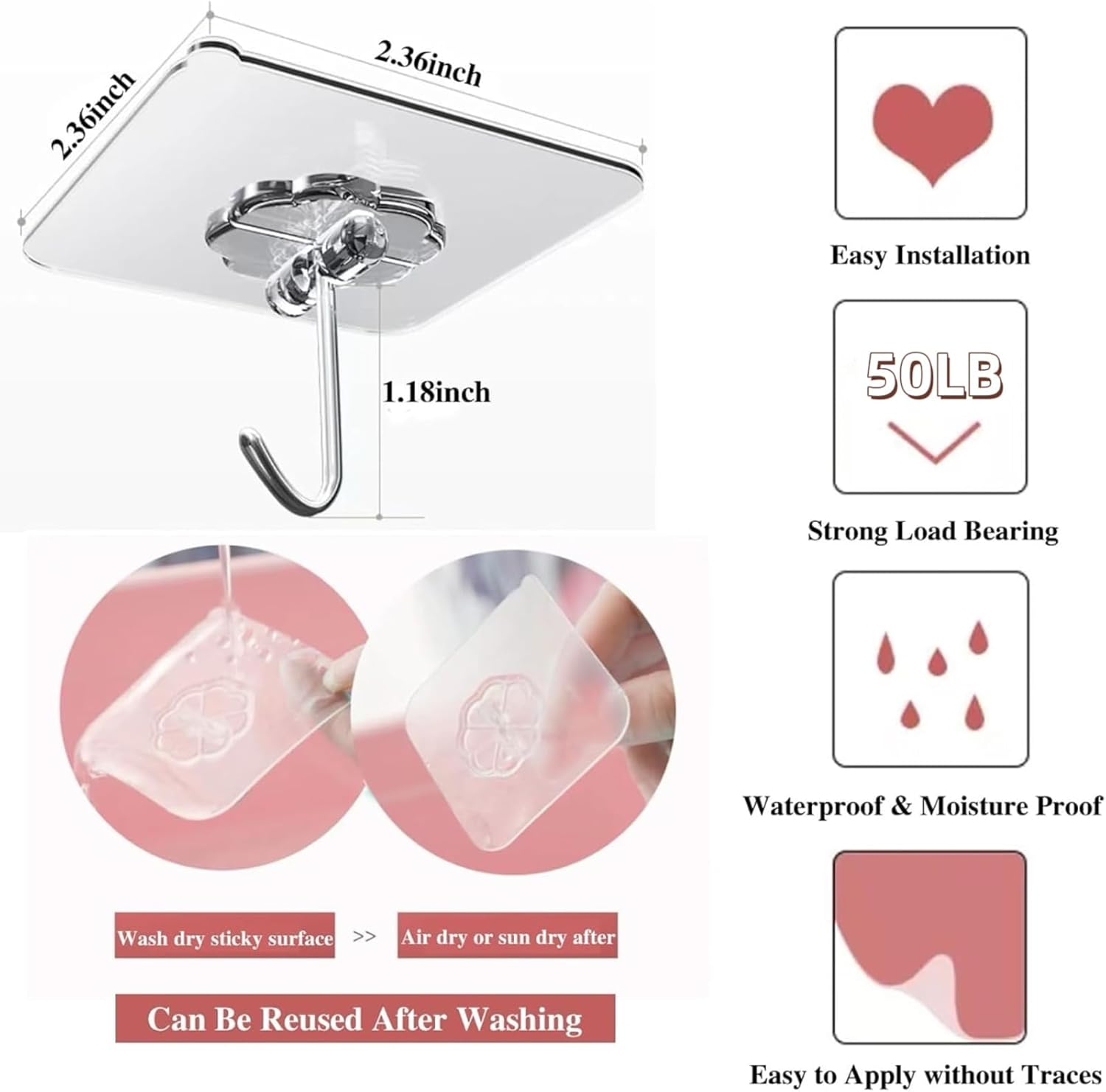 • Premium materials: Adhesive hooks crafted from robust stainless steel and durable PVC; high quality and longevity; remain clean and unaffected by time; non-toxic, recyclable, and transparent