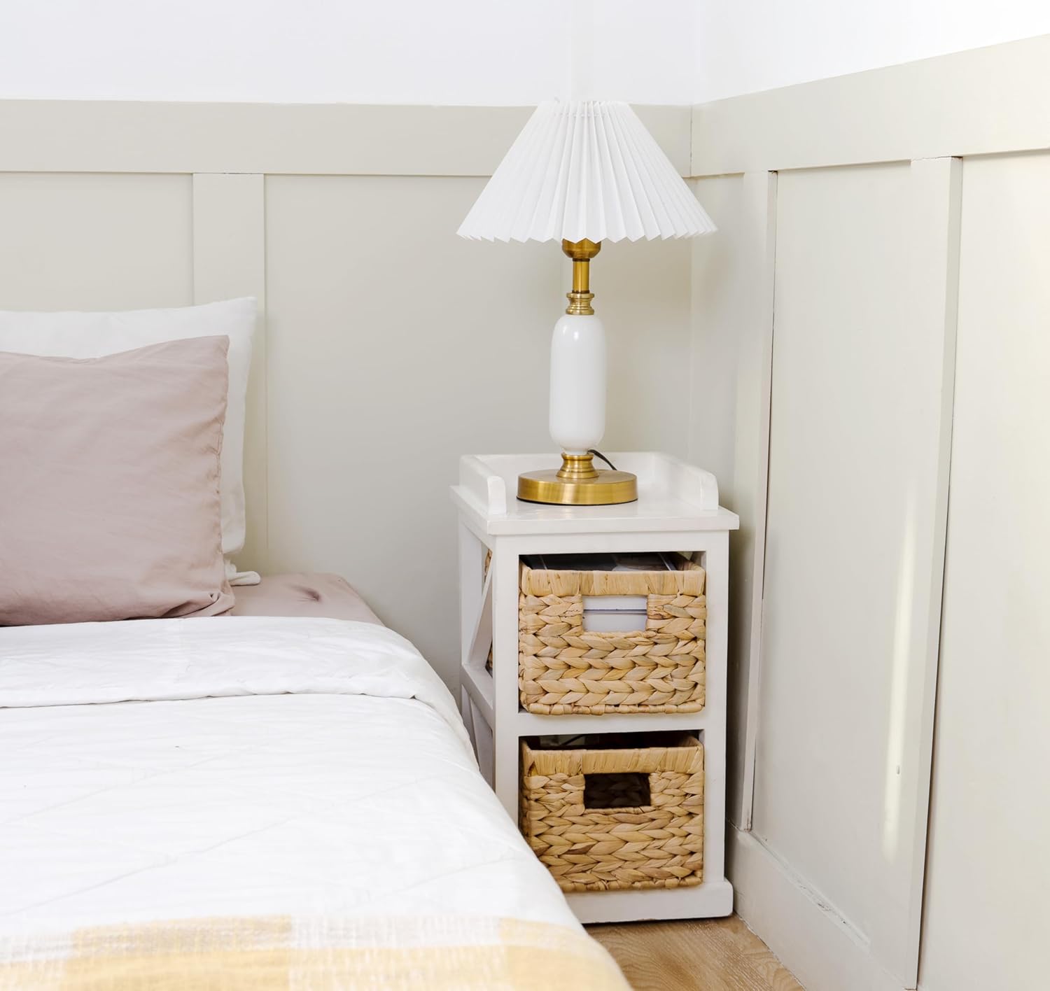 • 🌿 Natural and Sustainable: wicker baskets for shelves were handwoven from natural water hyacinth over an iron frame, the material is natural and friendly to the environment.