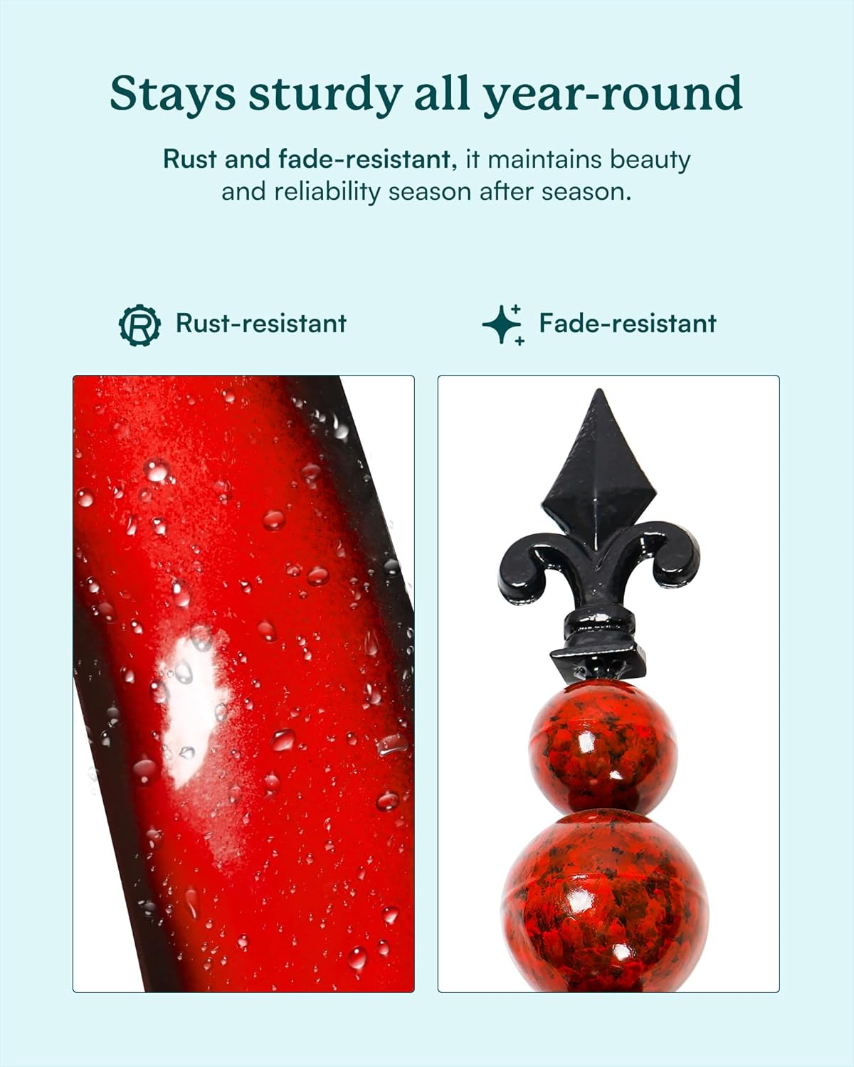 • RESISTANT OUTDOOR METAL DECOR: Made of resistant metal with protective coating finishes. UV, RUST, and FADE RESISTANT. The all-season decorative spinner can be cleaned easily to keep its reflective shine and rustic appearance. Long-lasting use