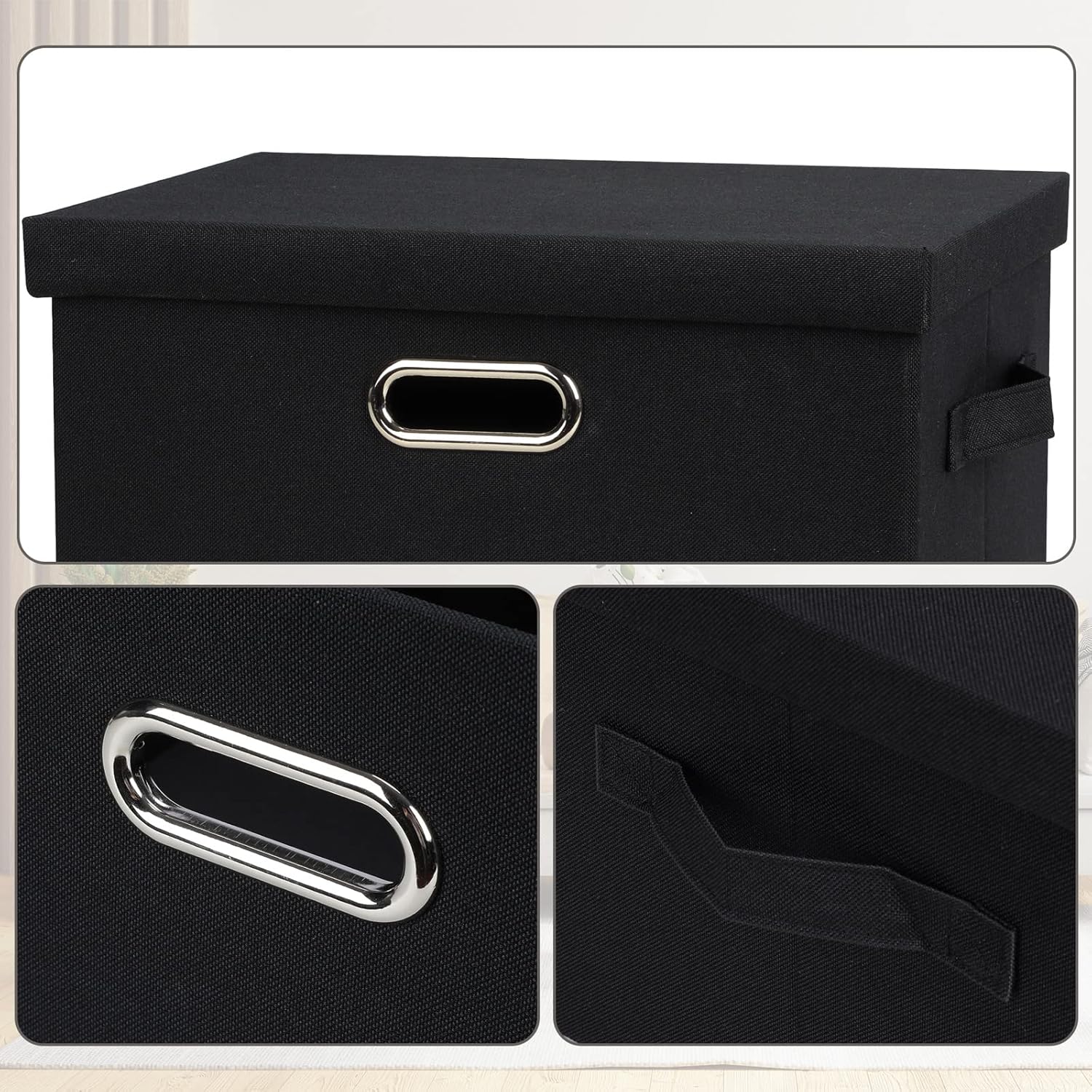 • ✅[Sturdy and Stackable] The storage bins with lids are consist of heavy-duty thick hard cardboards with a solid bottom and a removable shelf bins lid. Every large storage bin can hold things with weight at least up to 50 pounds, you can stack them upon one by one.