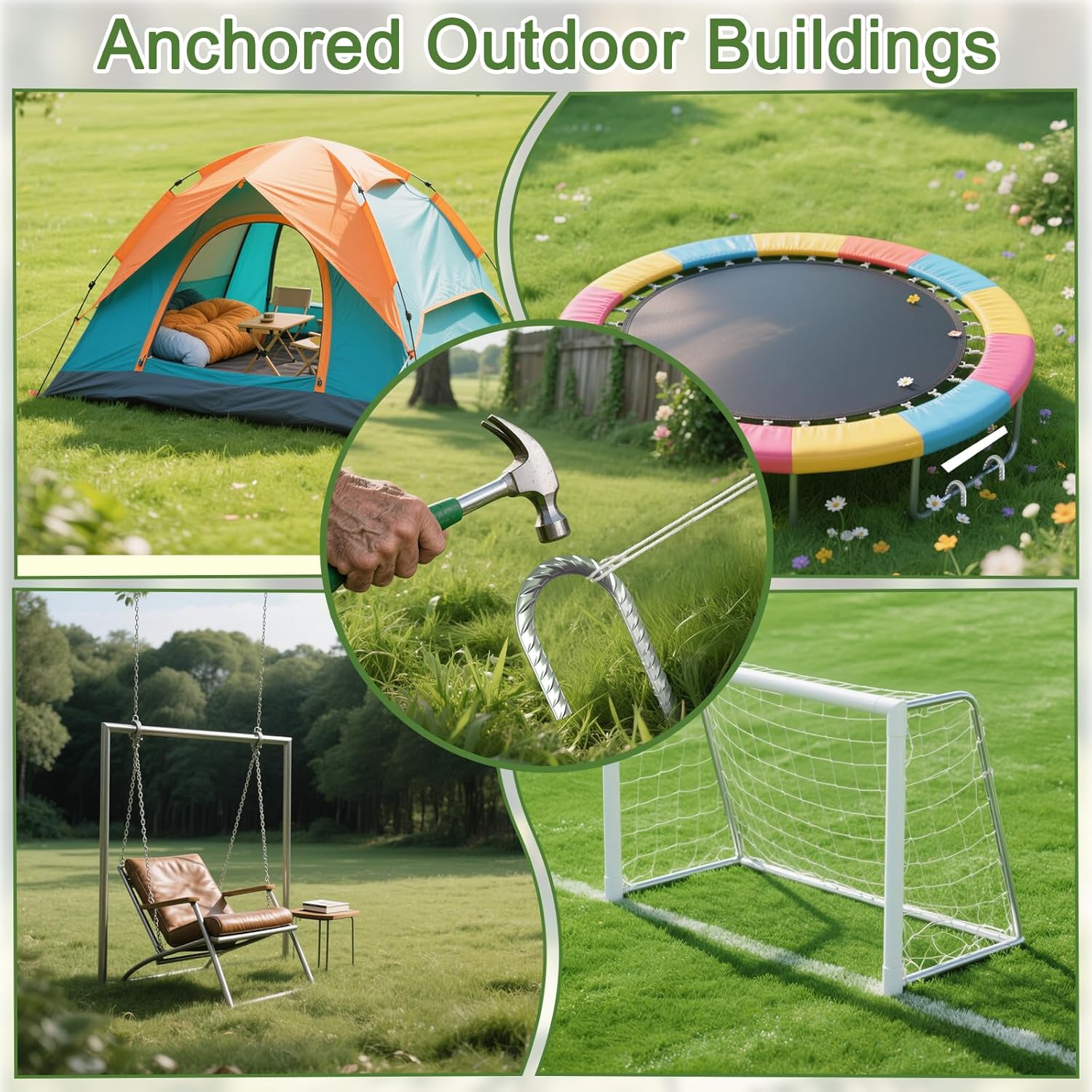 • WIDE APPLICATION: The main application scenarios of ground stakes heavy duty are garden farms, festival decoration, outdoor construction, and fence reinforcement. Such as fixed chicken coops, inflatable decorative Santa , green house, tents, trampolines, carports, swings , and the bottom of chain fences to prevent pets from running out or wild animals from entering