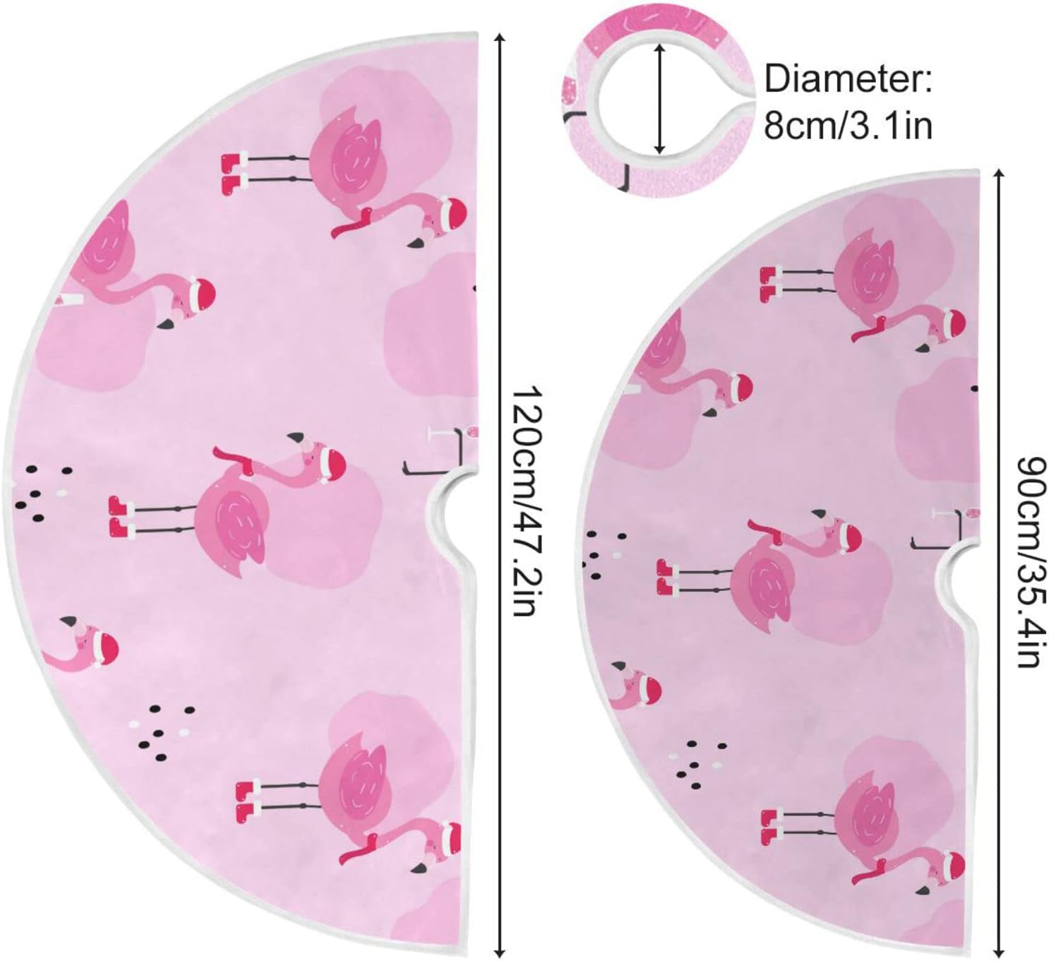 Christmas Flamingo Champagne Tree Skirt, Seasonal Tree Mat Holiday Party Supplies Ornaments Indoor Outdoor Decorations for Tabletop Trees 35.4 Inches