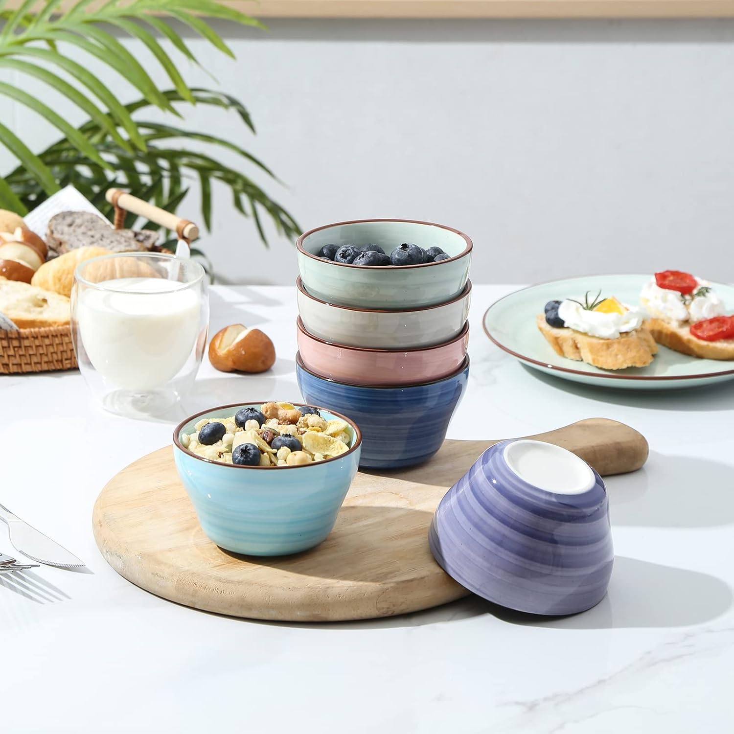 • VERSATILE - These 8oz bowls are perfect for a small helper of dessert, soup, fruit, snack, and ice cream, even your favorite condiments and dips like salsa, ranch, and more. Great useful for portion control and sizing for eating healthy. Whether you're enjoying a morning breakfast or a sweet evening treat, you'll love this set of 6 dessert bowls.