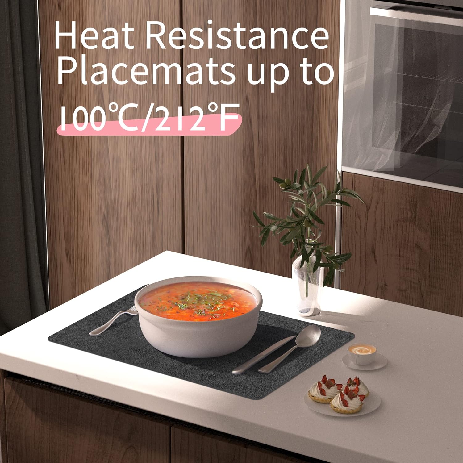 • EASY CARE: Designed for ease of use, these durable table mats withstand any spills and stains, making clean-up a breeze. Just with a simple wipe with a rag or a rinse under the tap, they'll be spotless and ready for your next meal