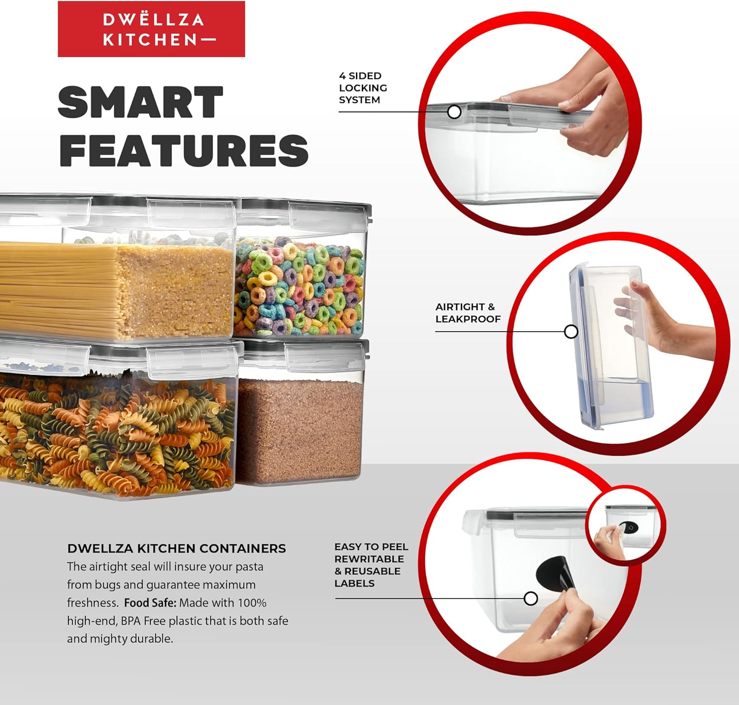 • No Plastic Taste: No Dealing with Tainted Flavors. Our Dried Food Storage Two Piece Set Is Made Using Thick and Durable Plastic That Never Alters Taste, is 100% BPA-Free, And Treats You to Hassle-Free Maintenance. Clean-Up Is a Breeze. Our plastic storage containers are 100% safe for the freezer, microwave, and dishwasher.