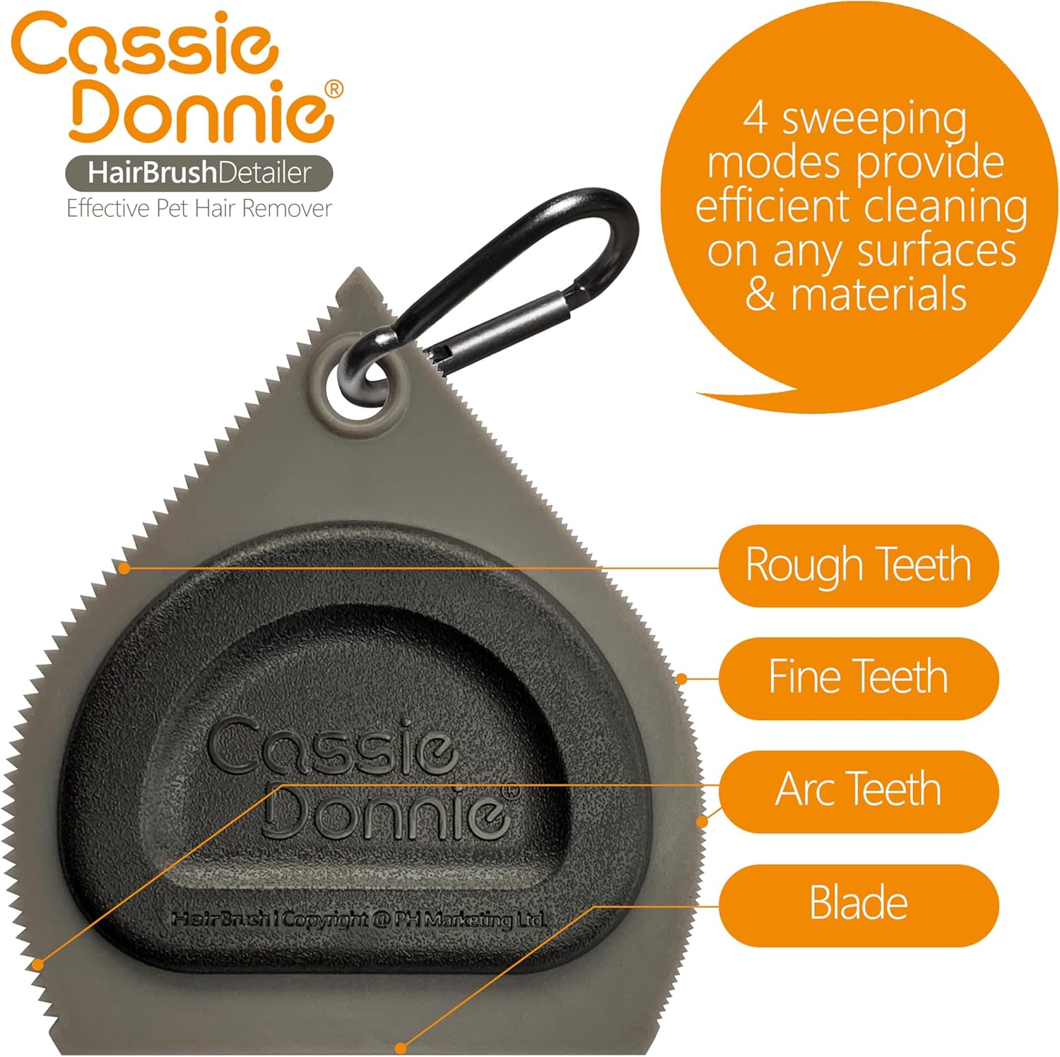 • 4 SWEEPING MODES. Our mini indoor outdoor pet hair remover has four modes for efficient cleaning. The Flat Blade suits smooth surfaces, like wooden tiles. Fine Teeth mode is ideal for medium-soft fabrics. Rough Teeth mode tackles stubborn hair on coarse rugs effectively. The Arc Teeth design extracts embedded hair from curved surfaces. It's remarkably effective, so keep a handy vacuum nearby to collect it all!