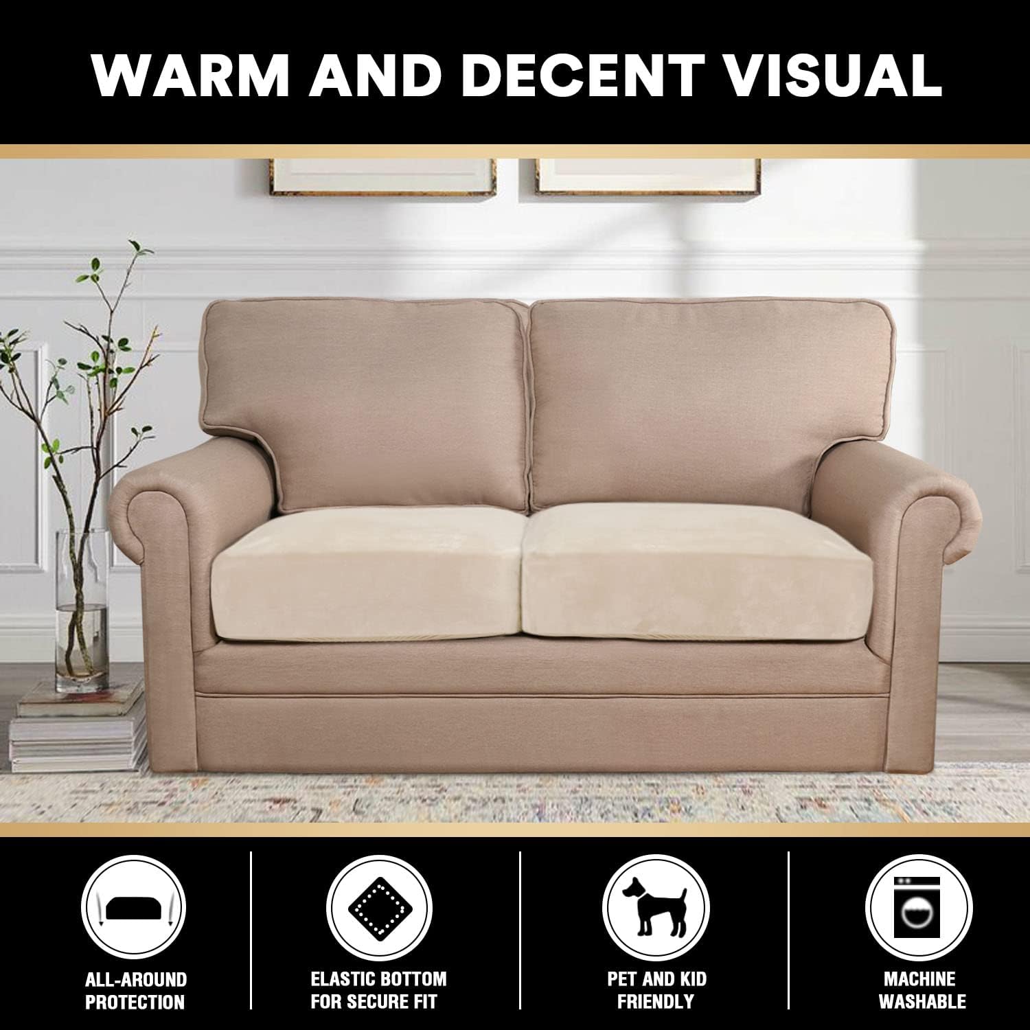 PrinceDeco Velvet Couch Cushion Cover Stretch Sofa Seat Covers Washable Cushion Slipcover for Chair Love Seat Sofa Cushion Furniture Protector Seat Cushion Sofa Cover (Each Width Up to 29.5", Ivory)