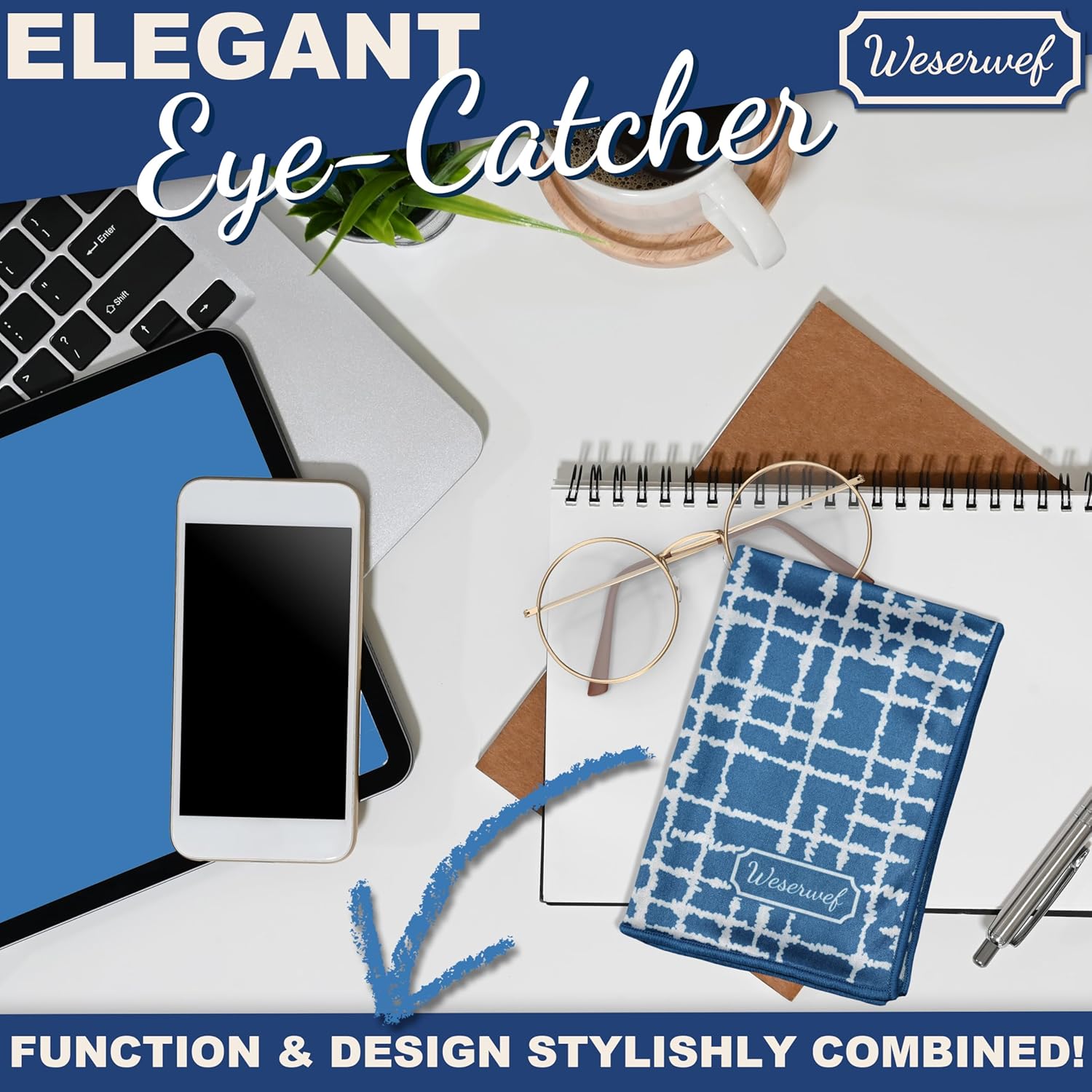 WESERWEF Design Microfiber Glasses Cleaning Cloth – Premium Cleaning Cloth for Eyeglasses, Screens, Tablets, Cameras & Lenses, 12" x 12", Ultra-Soft & Scratch-Free (Blue)