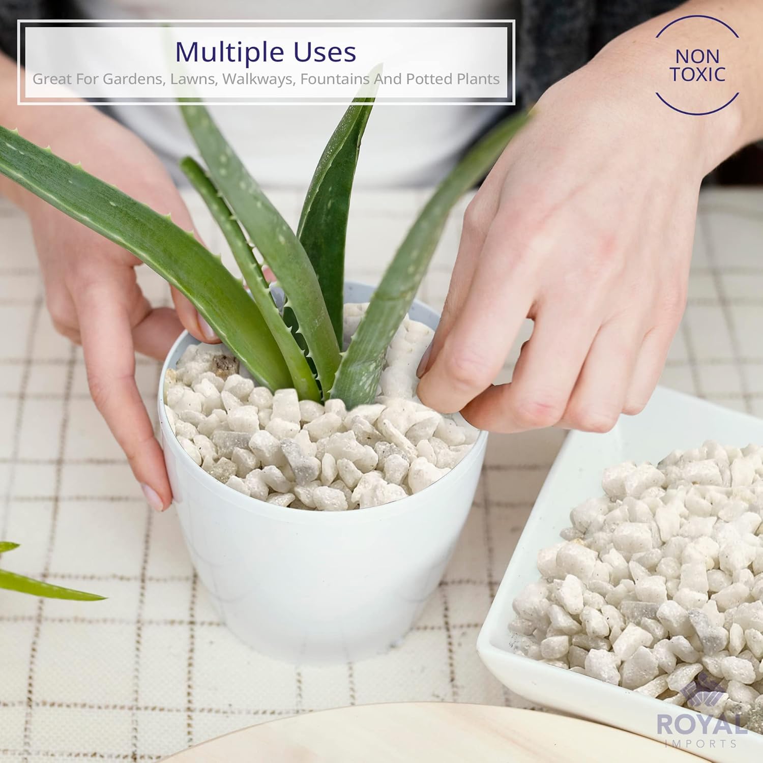 • Best Material - These best material natural stones by Royal imports are non-toxic and eco-friendly. Their natural attribute will make them last longer because they will not deteriorate like mulch does. These rocks are smooth with no sharp edges. This makes it easy on the feet when used in landscaping pebbles and also provides an ideal smooth surface for painting.