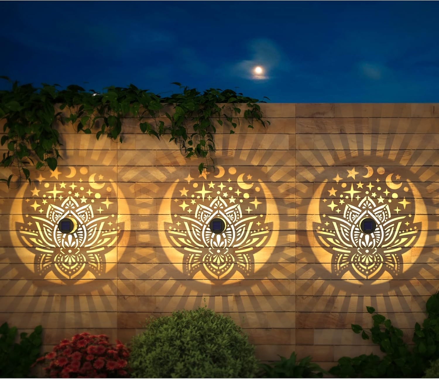 • Good Decoration: 10 lumens of warm yellow light. The small fence solar lights can project a unique and beautiful lotus pattern. In a dim environment, the solar lights can illuminate a corner of the fence or the wall and create a beautiful and warm atmosphere. They are very suitable as holiday decorations and gifts for relatives and friends