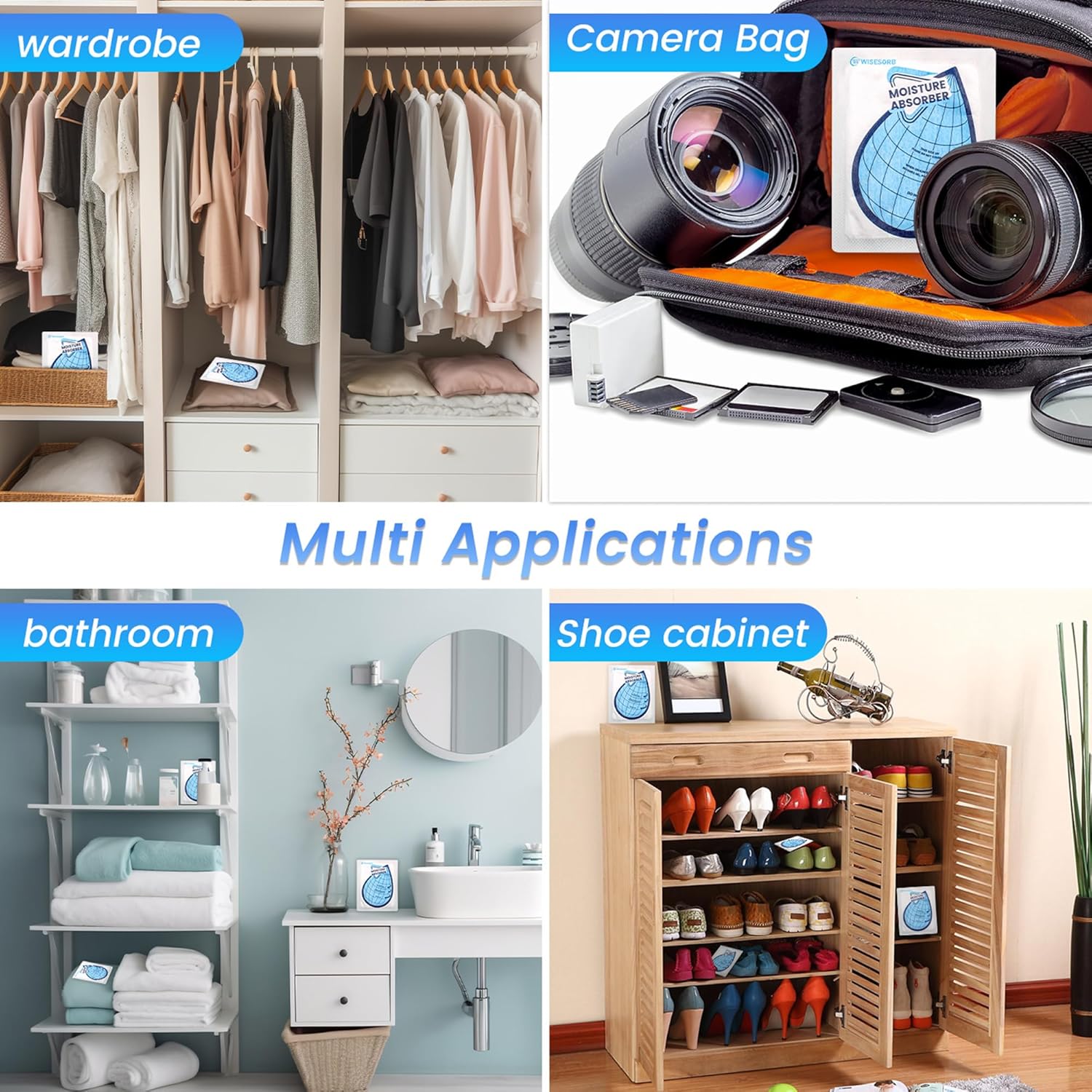 • 【Space-Saving】: Wisesorb moisture absorber bags are designed to save space, making them incredibly easy to use. Simply place them in the desired area without occupying much space. Placing them paper side up as instructed to observe the beads turning into gel, offering a visual confirmation of moisture absorption. The result is preserved crispness in clothes and the elimination of musty odors, making Wisesorb bags a reliable choice.