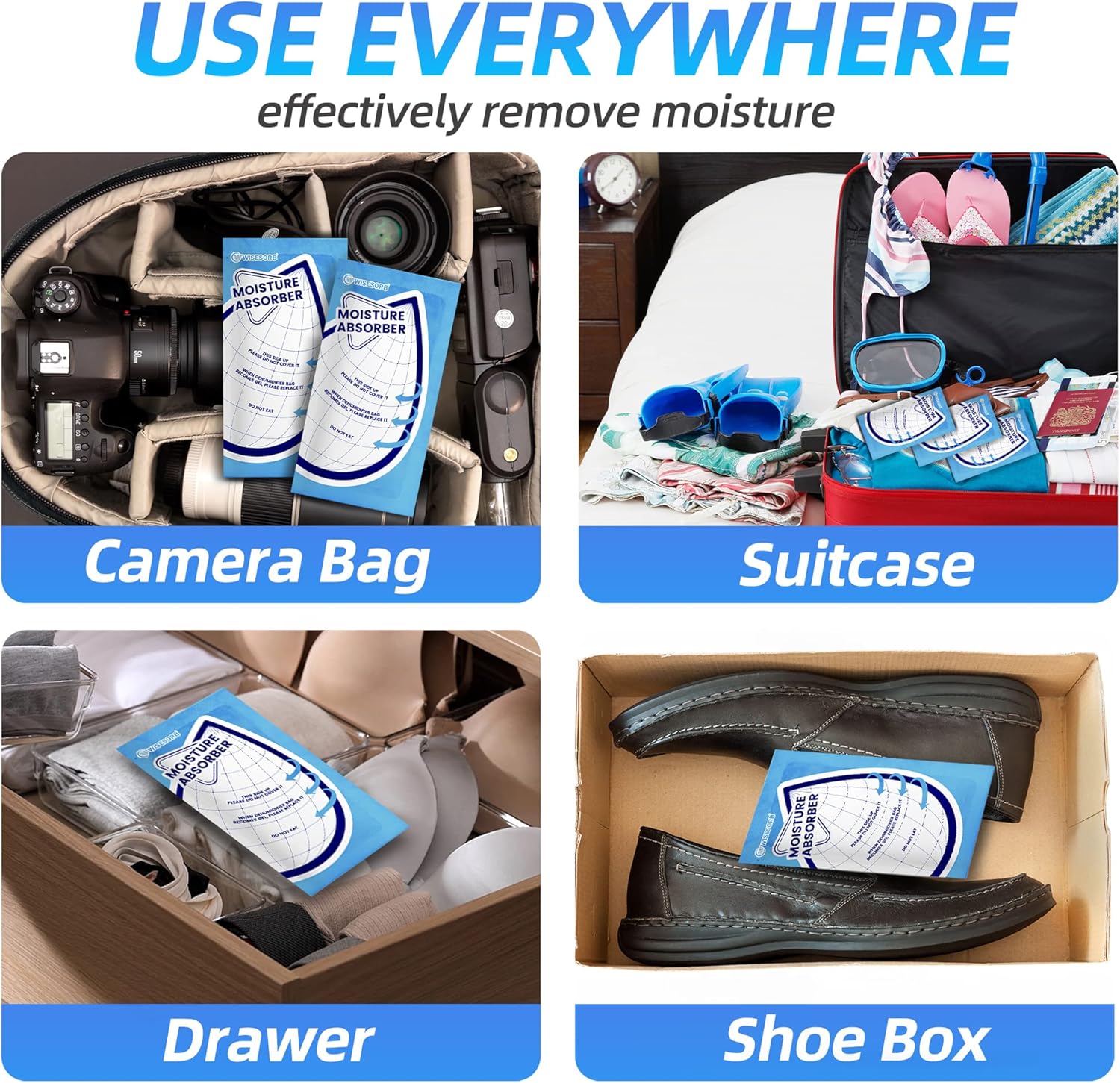 • 【Versatile Usage】: Moisture absorber packets can be used in various locations, including closets, wardrobes, basements, laundry rooms, households, bathrooms, kitchens, shoe cabinets, cars, cat litter boxes, toolboxes, RVs, campers, and other enclosed spaces. These moisture absorber bags effectively protect your valuables from damage caused by excess moisture and prevent smells. Remember to keep the paper side facing up for optimal performance.