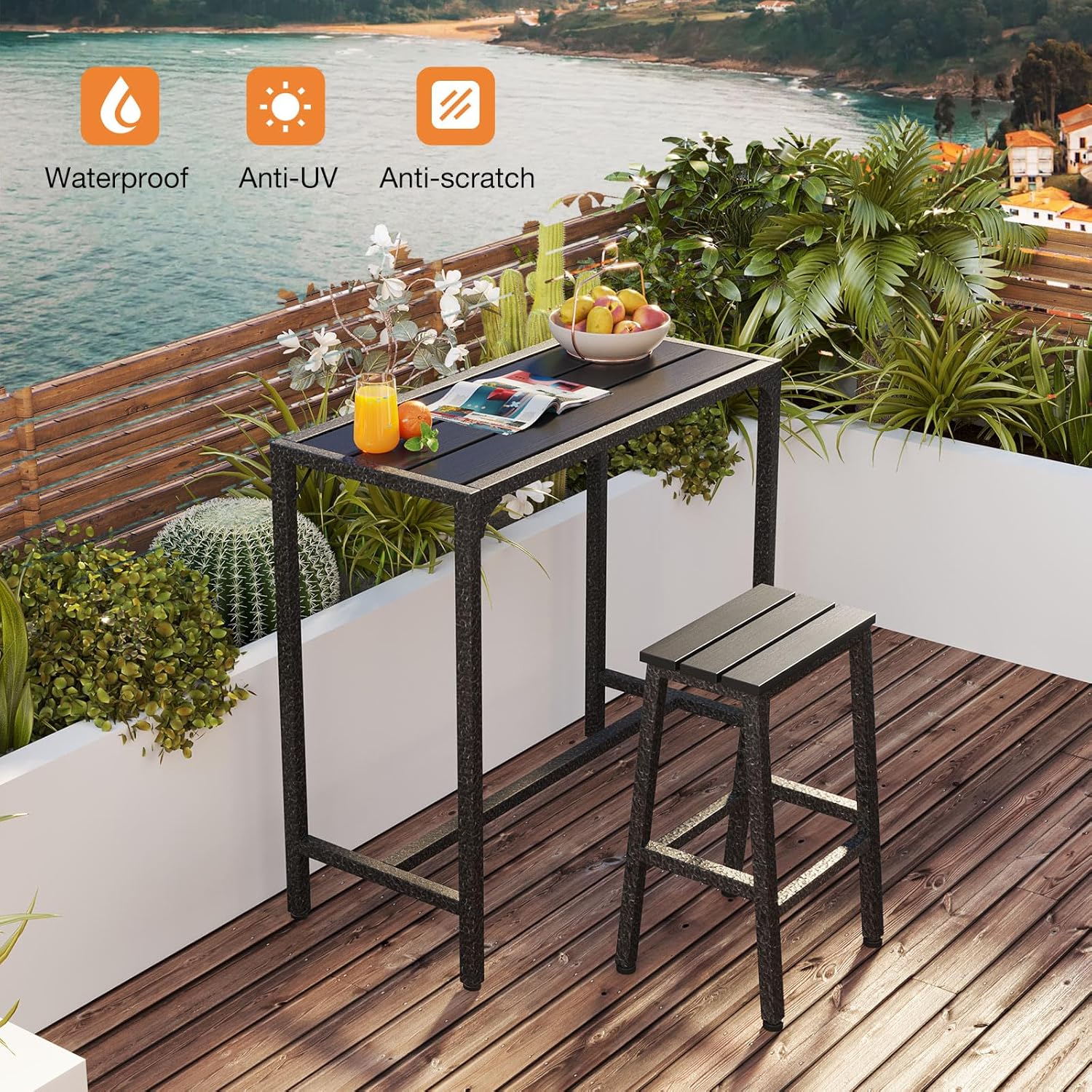 ODK 39 Inch Outdoor Bar Table, Patio Counter Bar Height Table with Weather Resistant Waterproof Top for Hot Tub Garden, Yard, Balcony, Poolside, Indoor (Black)