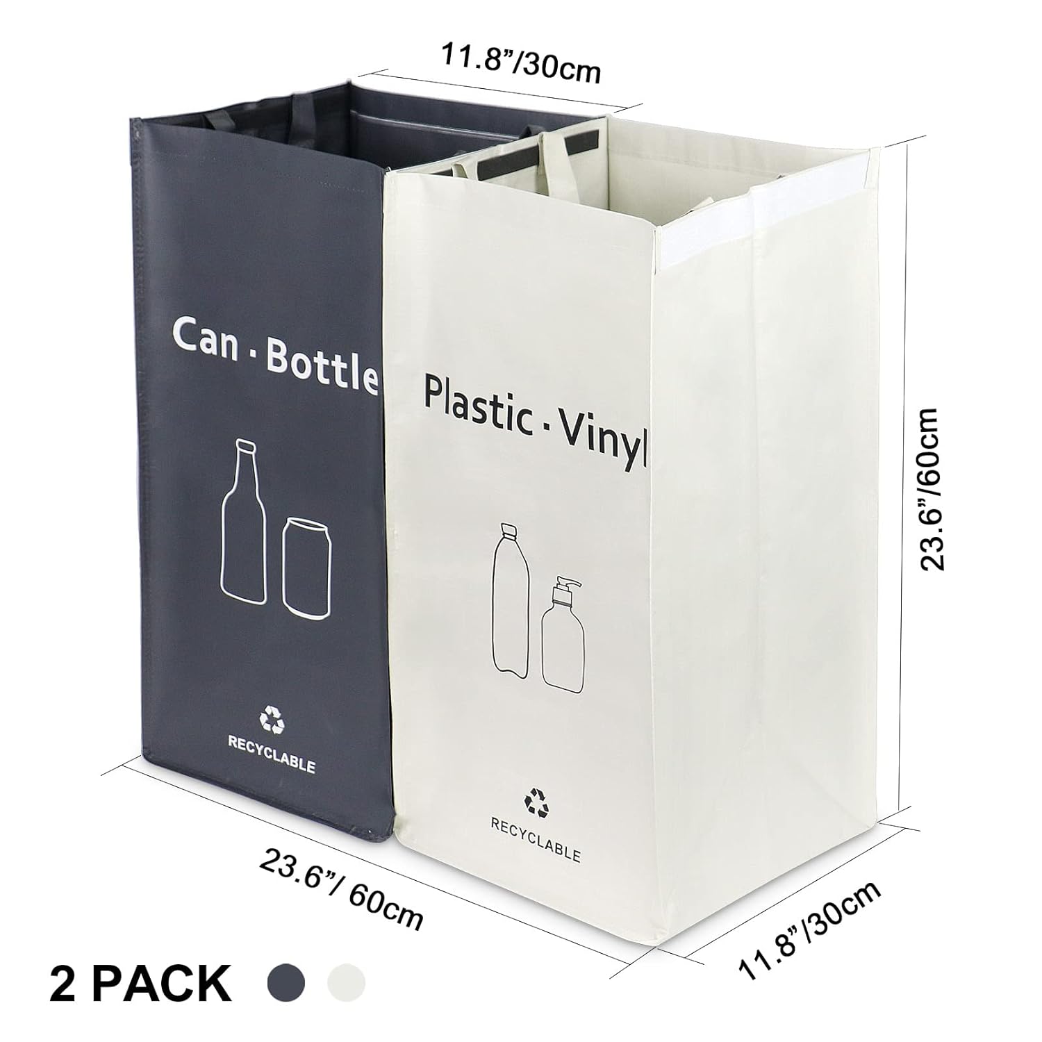 Recycling Bin, Separate Large Recycle Bins for Kitchen - Indoor Home Trash Bin, Recyclable Waste Trash Sorting Organizer, Durable, Washable, Affordable Recycle Bags, 2 Pack