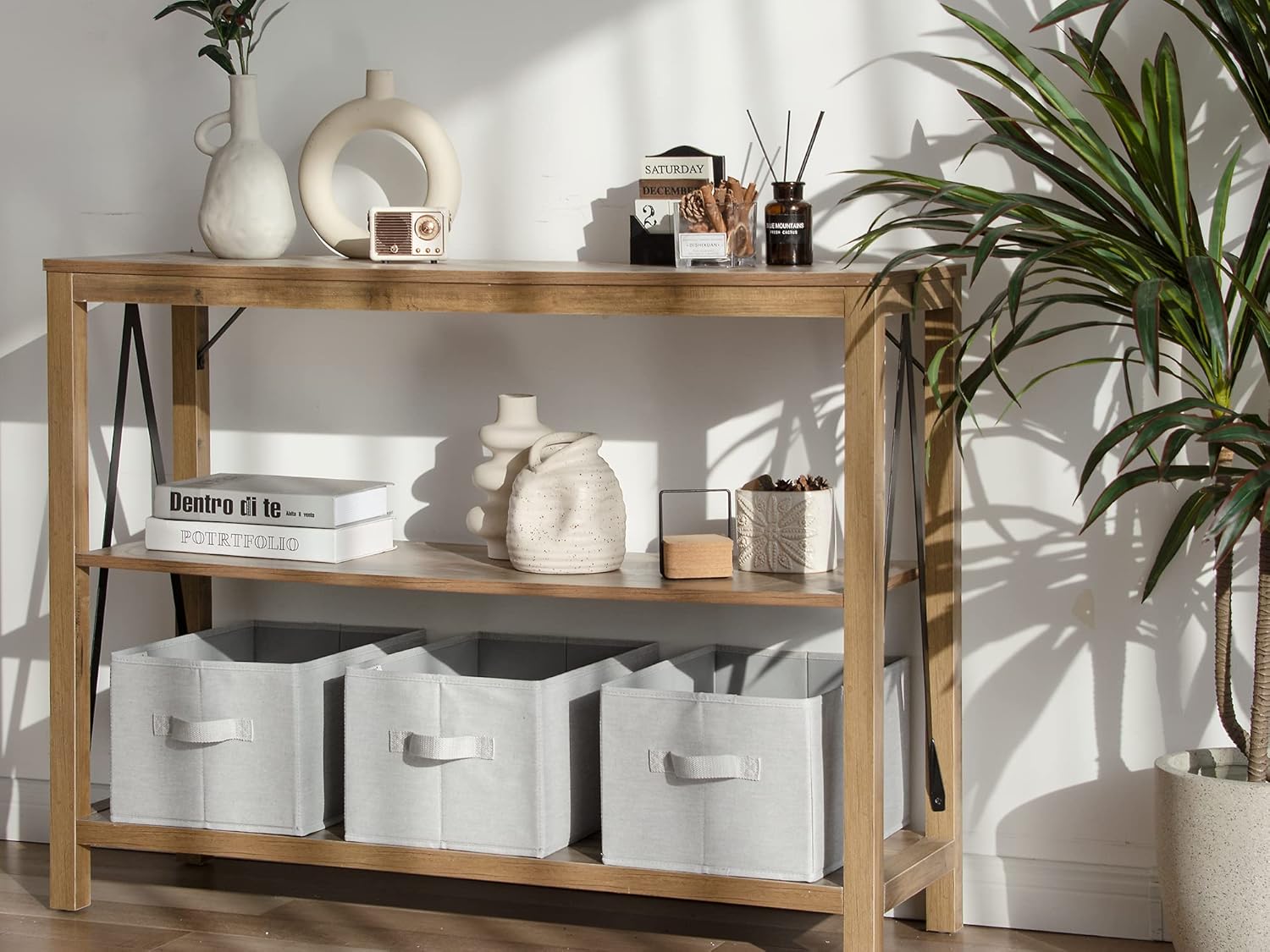 • The natural fiber and the inserted heavy-duty boards allow the storage bins to hold a weight of up to 30 pounds.