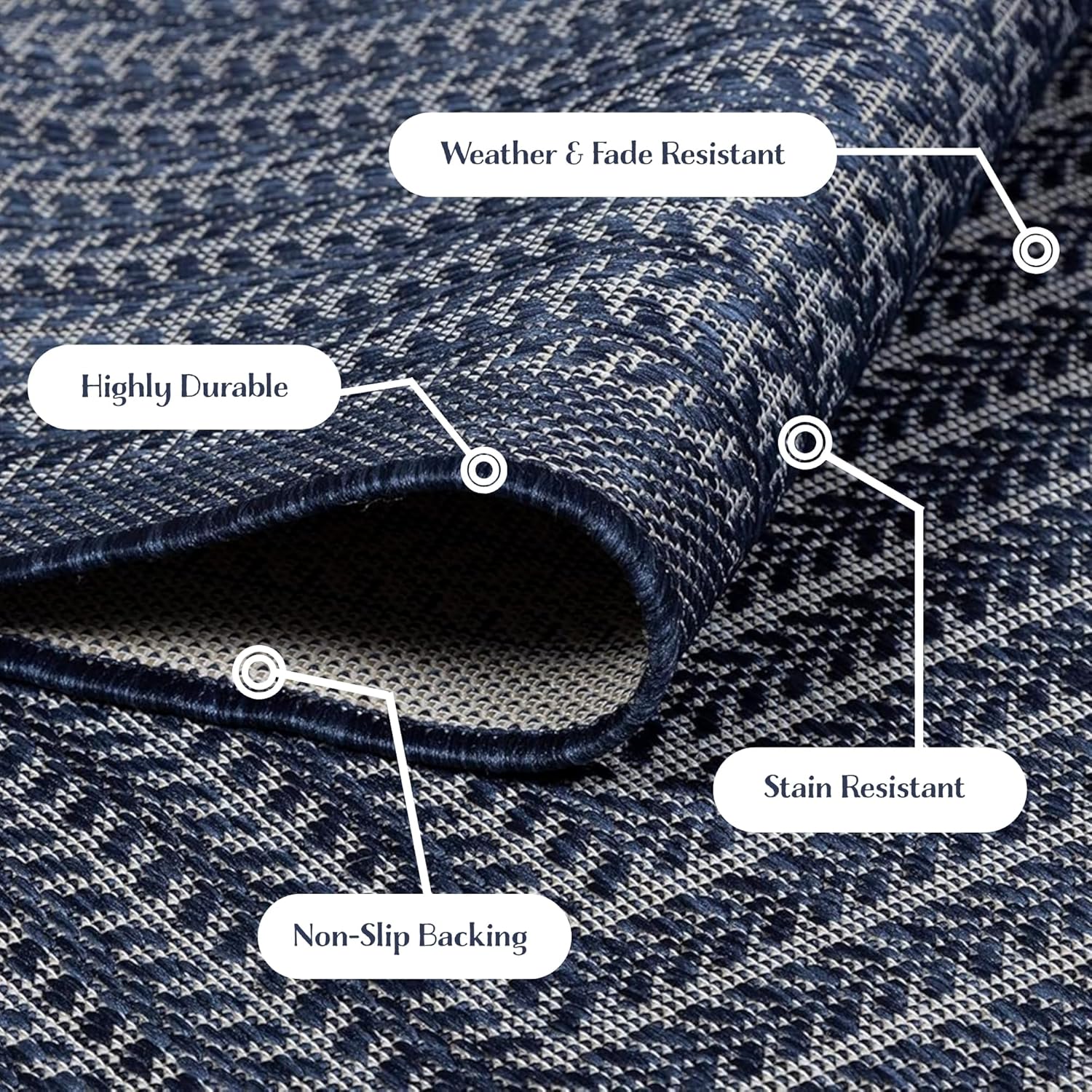 Adiva Rugs Outdoor Indoor Area Rug, Weather Resistant, Easy to Clean, Stain Resistant Floor Mat for Dining Room, Backyard, Deck, Patio (Navy Weiss, 2' x 3')