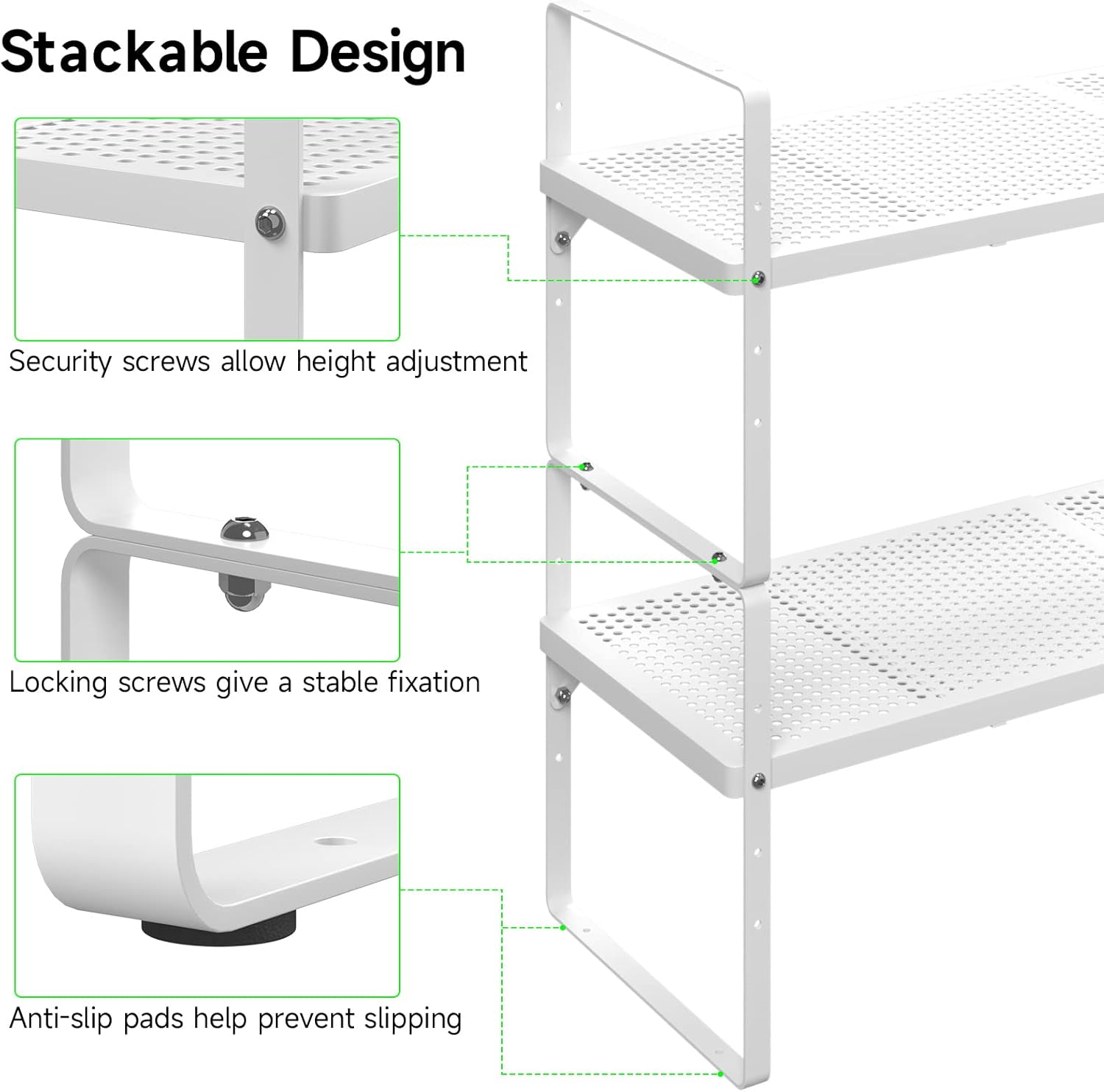 • Stackable Shelves: You can stack one shelf on top of another to creat multiple levels of storage space. You can choose 1, 2 or 3 tier shelving unit to meet your needs. The shelf stand is perfect for kitchen cabinets, pantries, countertops, under the sink or anywhere you need extra space to maximize storage and organization.