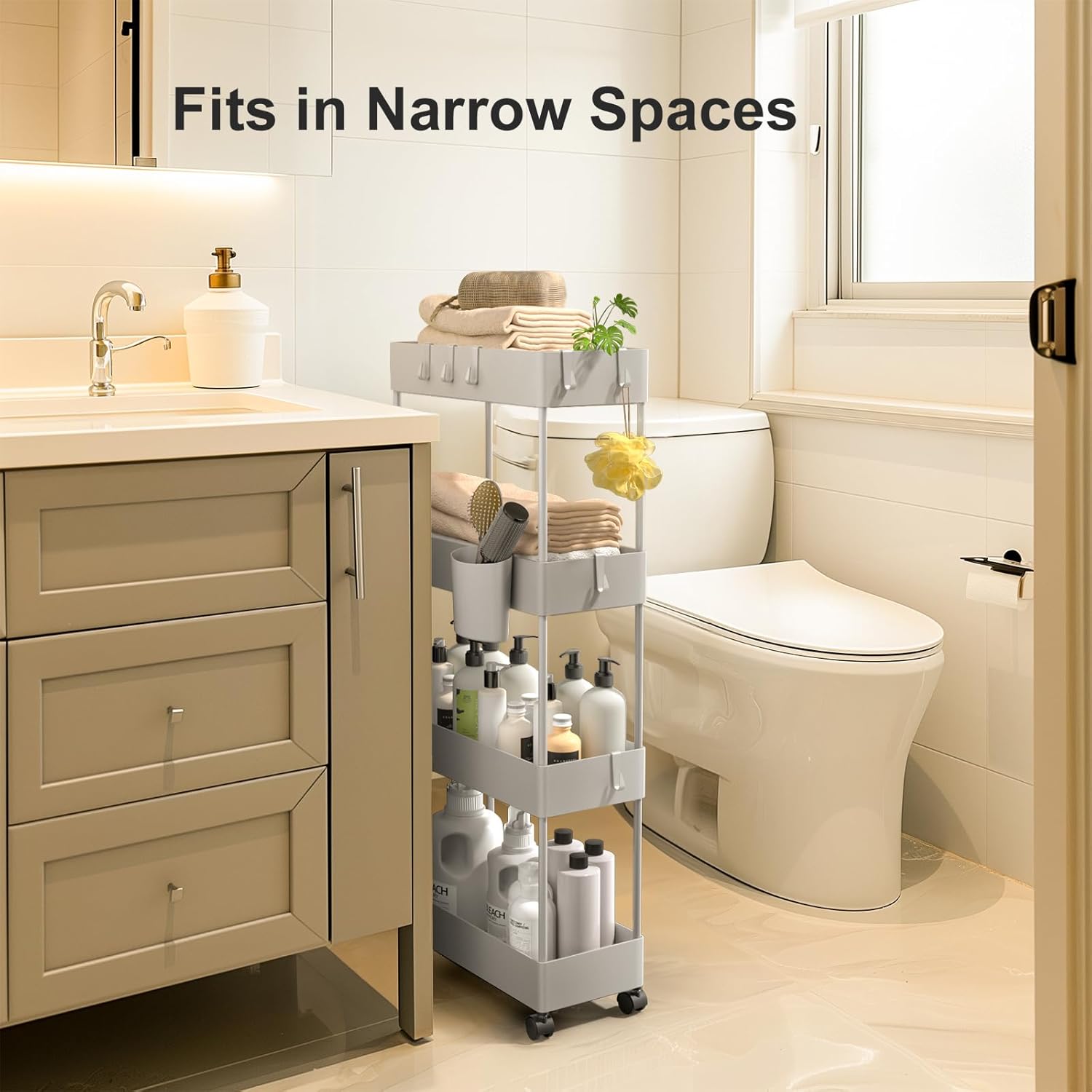 Pipishell Slim Storage Cart with Wheels, 4 Tier Bathroom Storage Organizer Rolling Utility Cart for Bathroom Kitchen Laundry Room Office Narrow Place (Gray)
