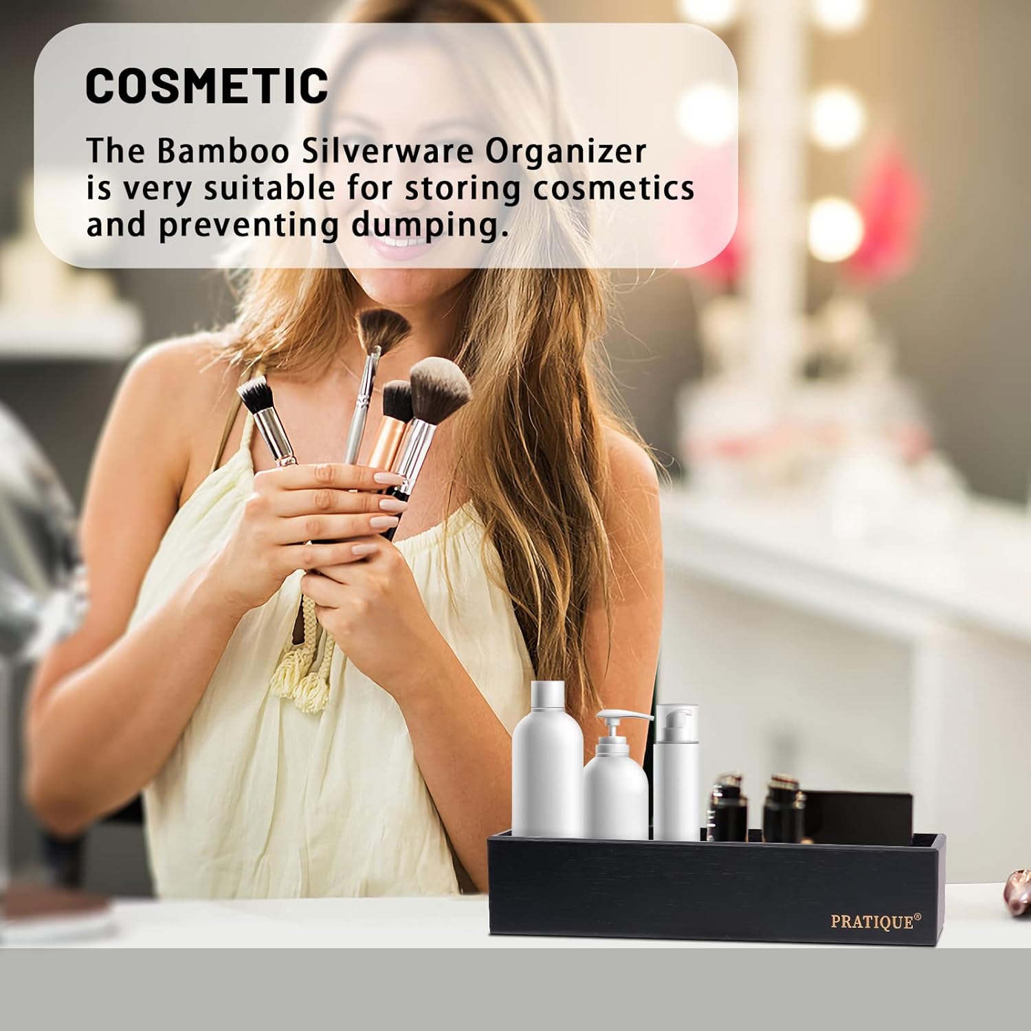 Bamboo Drawer Organizer - Kitchen Utensil Organizer Silverware Tray Cutlery Holder,Office Desk Supplies and Accessories,8.9 * 3 * 2.6inch,Black