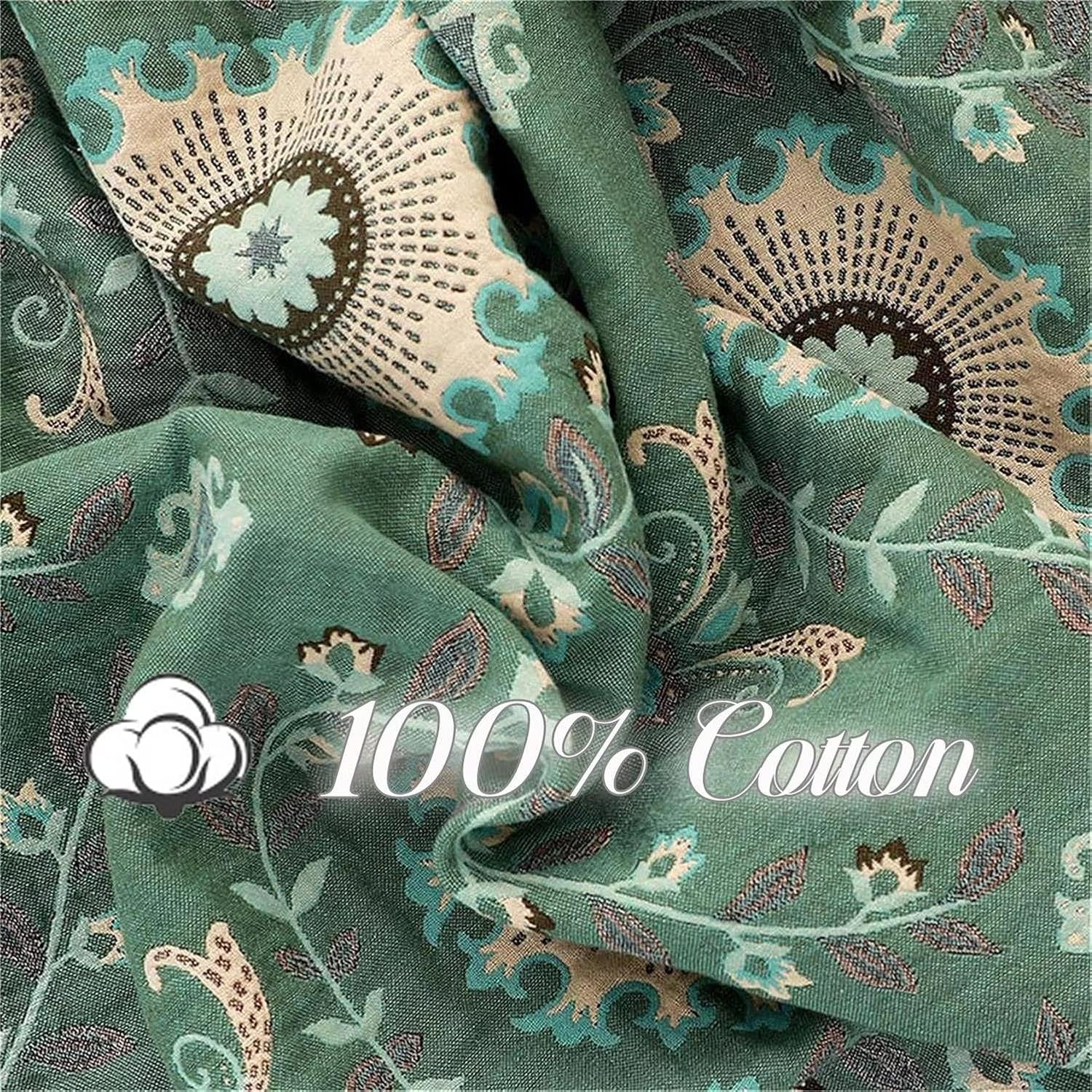 MSGKV Green Boho Throw Blanket for Bed Couch,100% Cotton Mexican Picnic Blankets Travel Blanket 80''x 90'', Super Soft Lightweight Muslin Blanket for Bedroom Living Room Boho Decor