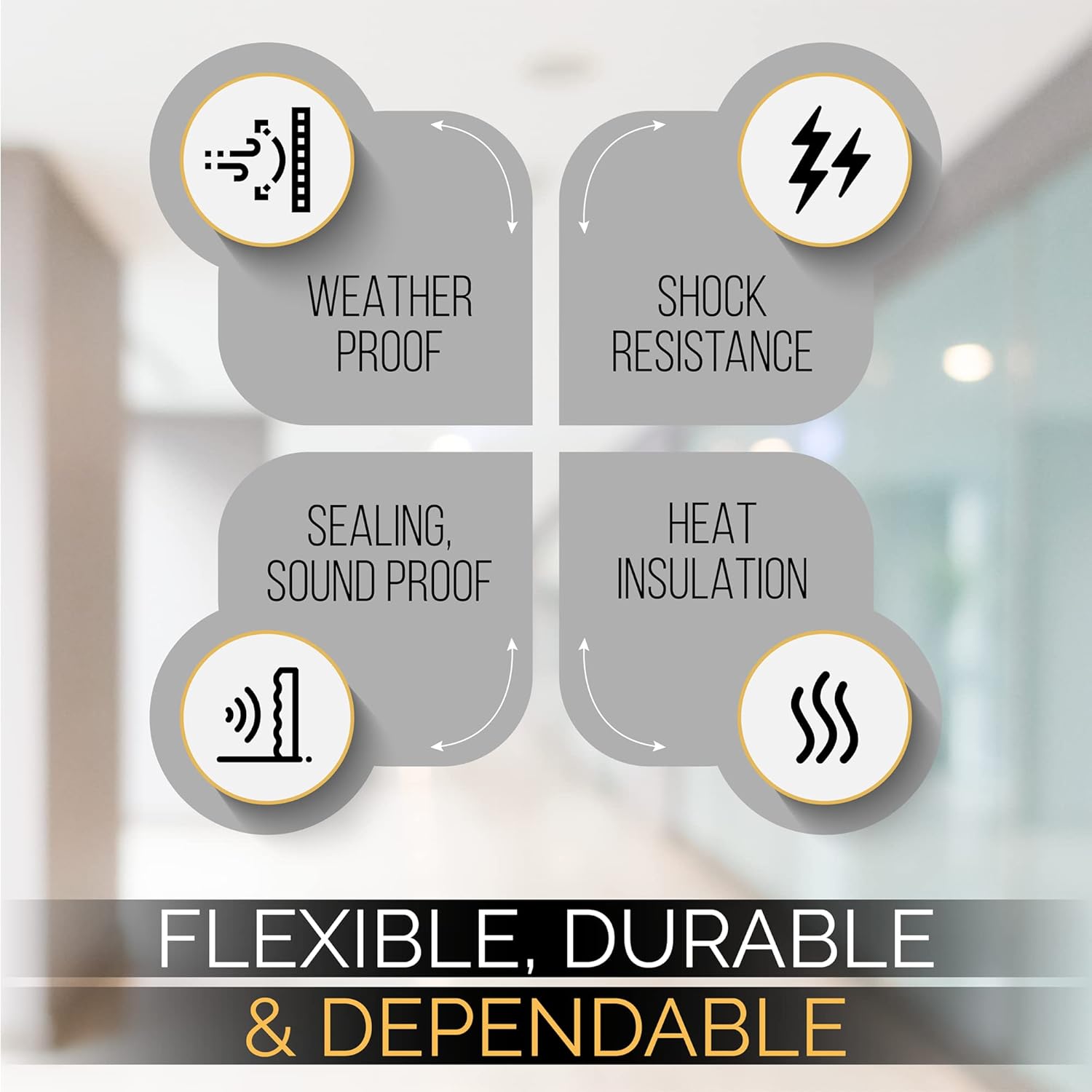 • STRONG ADHESION: Easily weatherproof a front door, winterize windows, home appliances, plumbing components or a vehicle. This adhesive weather stripping supports super strength adhesion to prevent lifting. Stick it in doorjambs, open gaps or edges.
