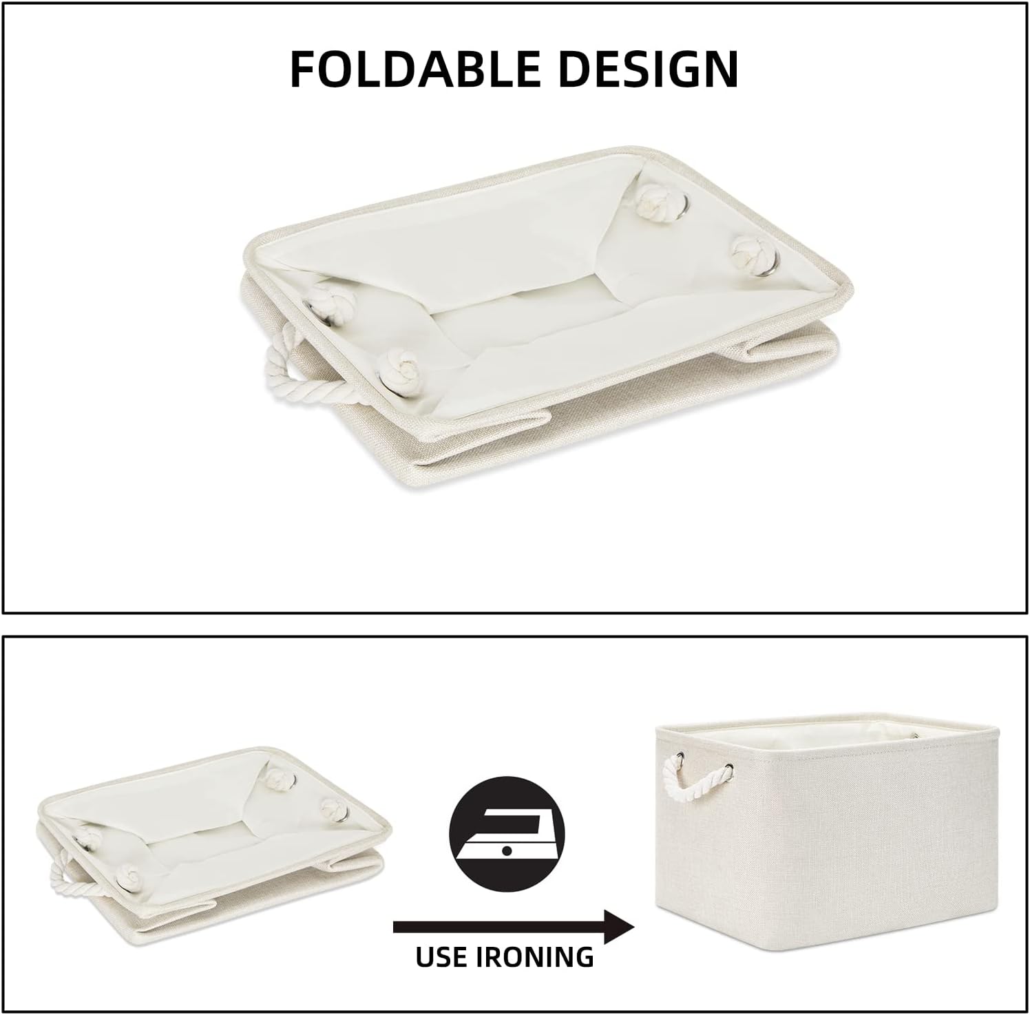 • Collapsible Baskets Set: Simply fold the canvas basket down flat for space-saving storage when not in use or when needing to transport. We shipped them in a folded package, if it doesn't stand up very well when you receive it, you can fill the large basket with clothes or blankets, it will recover gradually. If you want the basket to stand up quickly, you can use an iron to iron out the creases