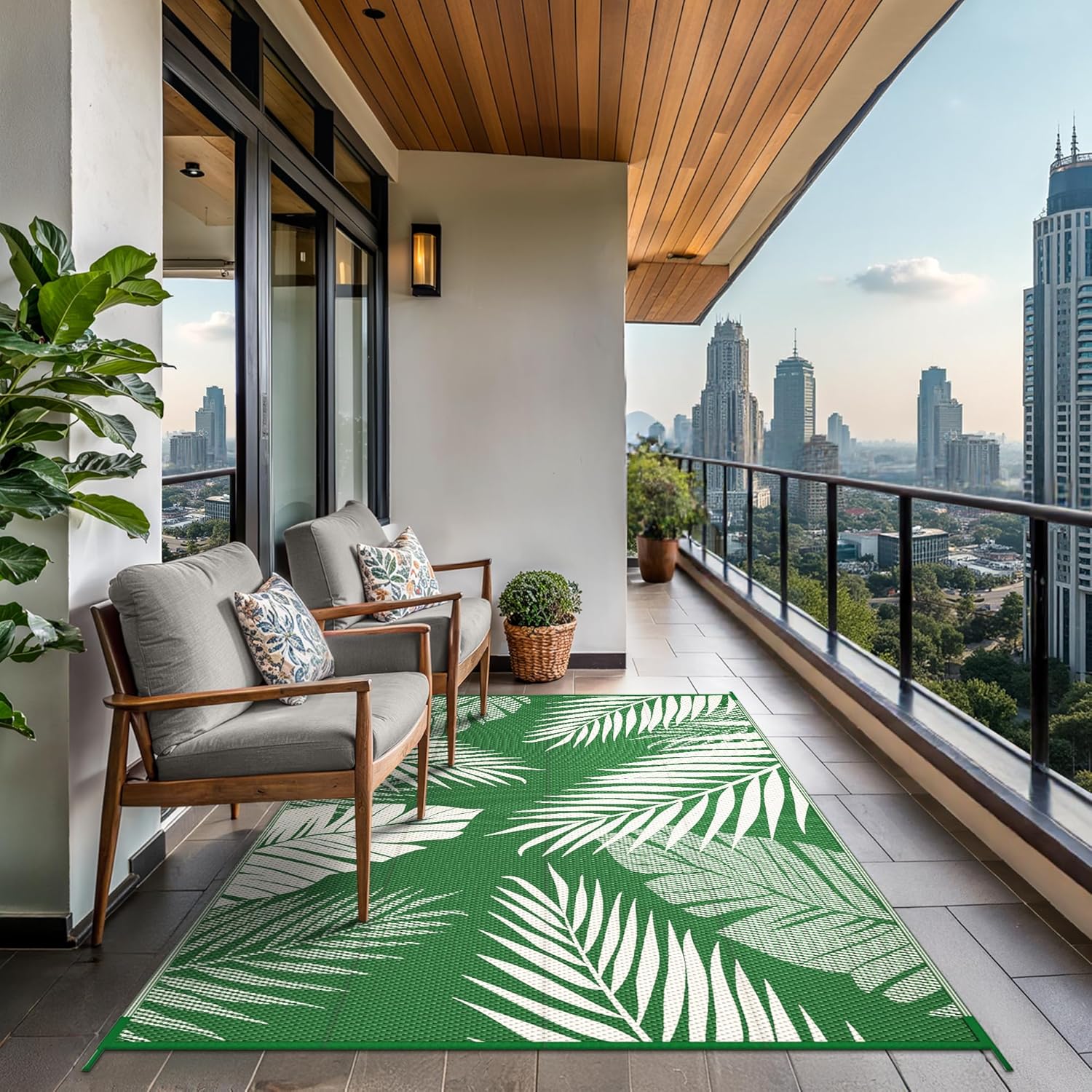 • Palm Leaf Design & Double-Sided Pattern: GENIMO reversible fall outdoor rug is designed with a double-sided pattern, completing the unique layout of multiple palm leaves. The 2 shades of green and white achieve the ultimate fusion. Either side can blend perfectly with nature and look very full and comfortable, making it a versatile piece for fall decor