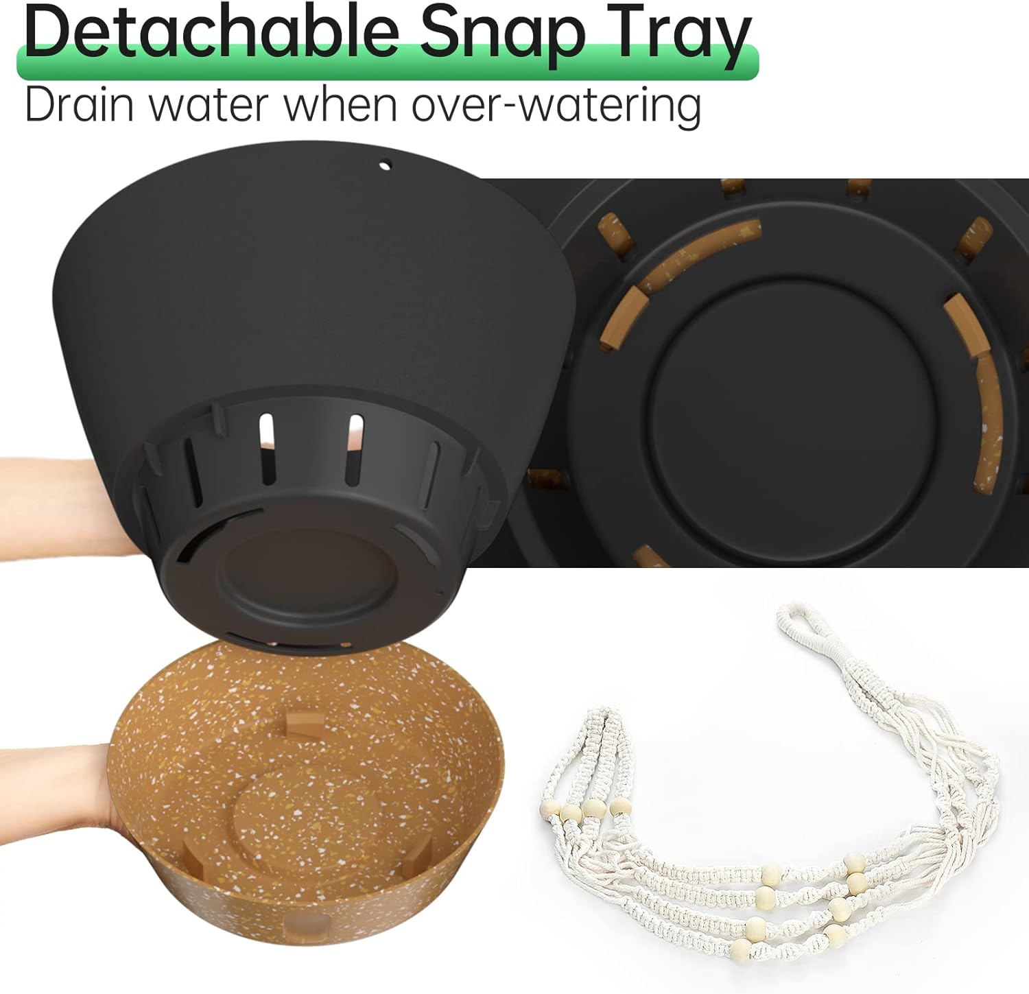 • Snap-in Tray with Visible Water Level: The tray can be removed for easy cleaning of the flower pot. The self-watering flower pot with drainage holes can drain excess water to the tray, so the tray will store an amount of water for the plant(Longer than 7 days). And you can water the plants by looking at the water level.