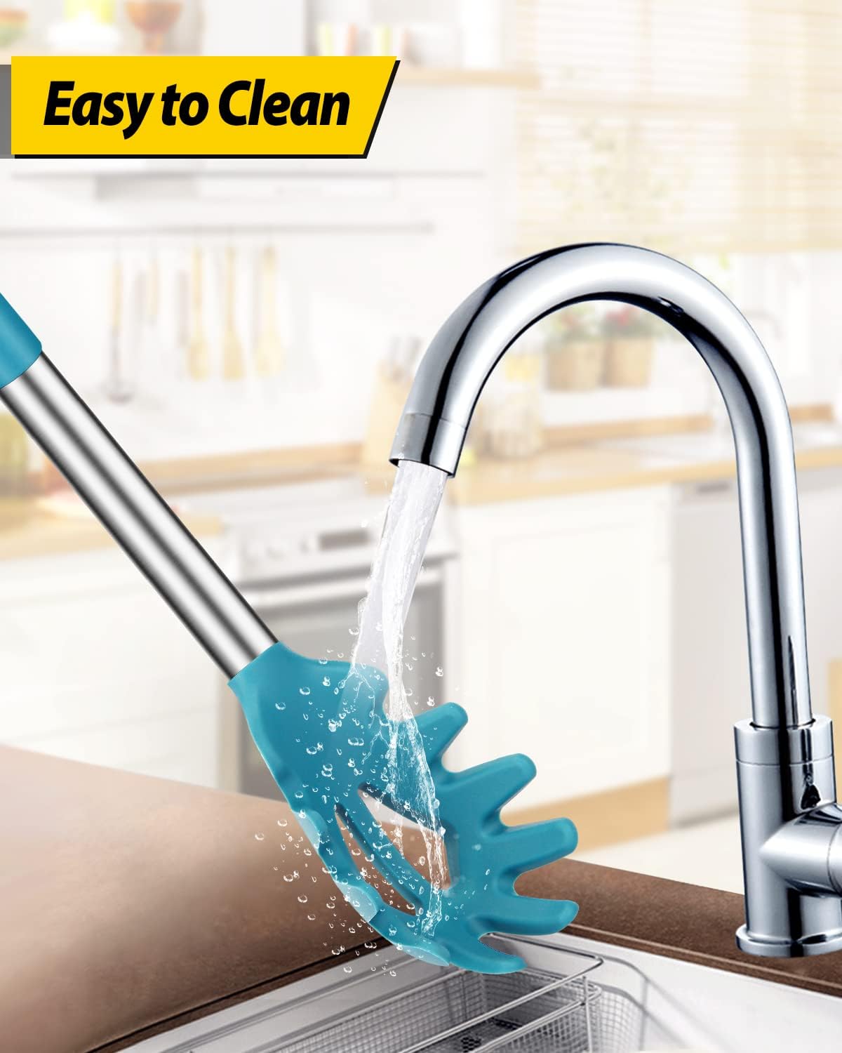 Silicone Pasta Fork and Ladle Spoon Set, Large Non Stick Kitchen Utensils for Cooking,Stirring,Serving Spaghetti, Soup, Sauce (BLUE)
