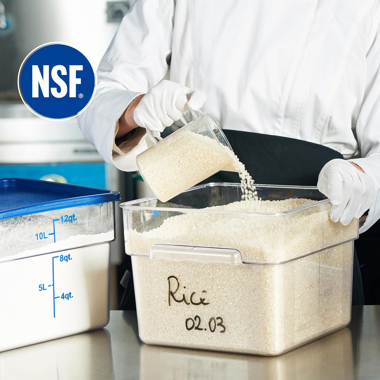 • NSF Listed Commercial Grade - This food storage container sets are certified by the NSF to meet strict commercial standards for safety and quality. Large capacity (12 quarts )provide ample space for storing large quantities of food, making them a great choice for use in professional kitchens or for anyone who values high-quality food storage containers.