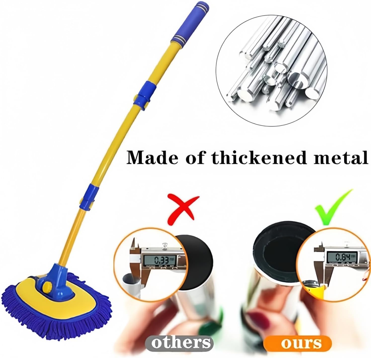 • Car Wash Kit Including:1x aluminum alloy wash mop with long handle, 2x chenille microfiber car brush mop head , 1x Microfiber Car Cleaning Cloth