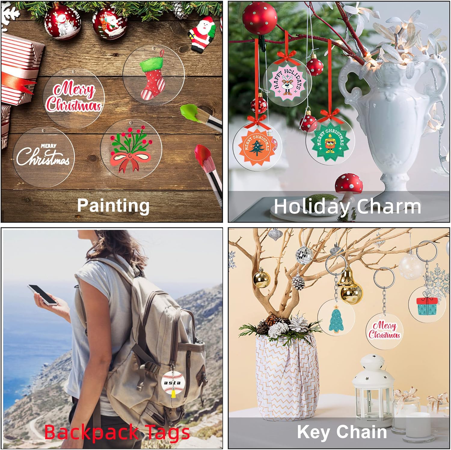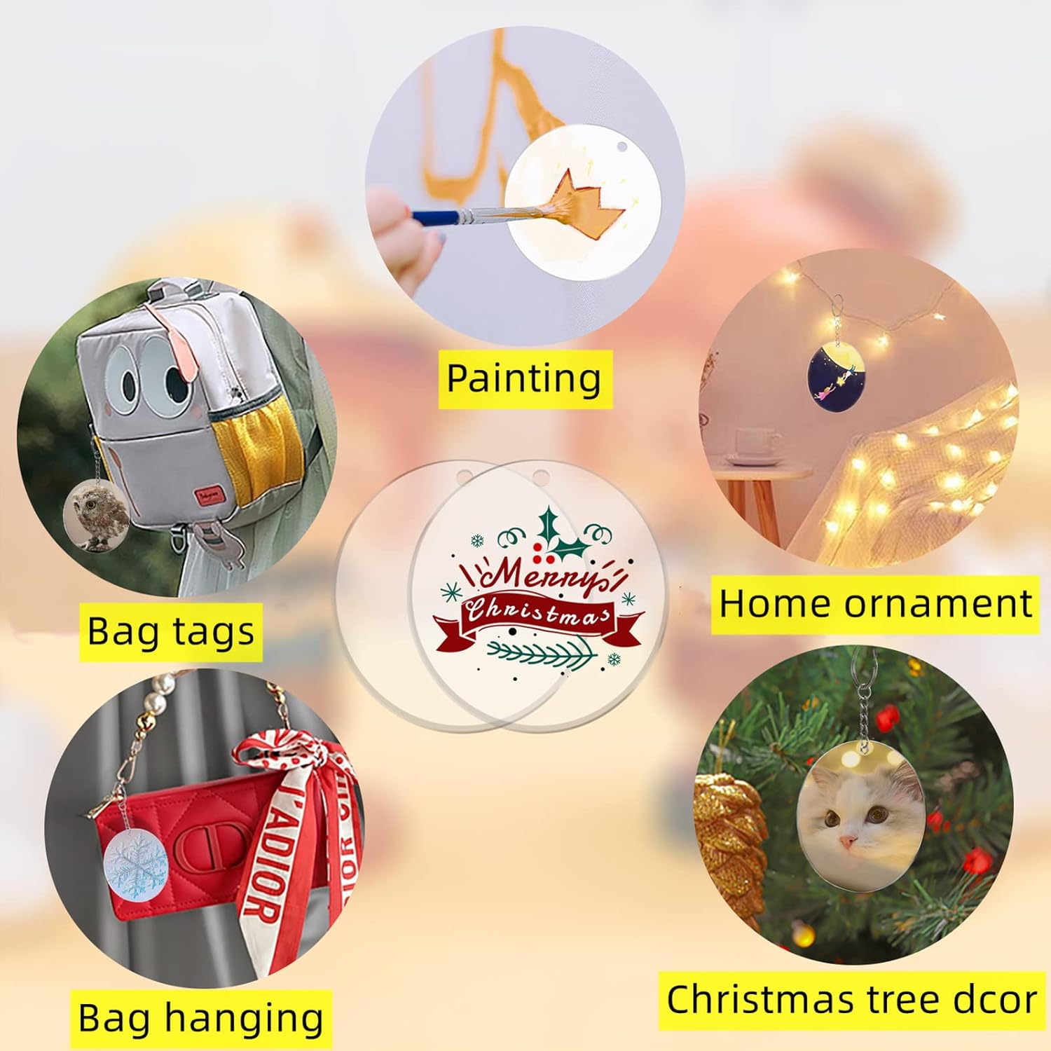 • Widely Used Blank Round:You can paint and engrave words or stick your favorite stickers on the blanks of the acrylic discs,DIY your own acrylic key chain ornaments gift tags pendants souvenirs and many other craft projects