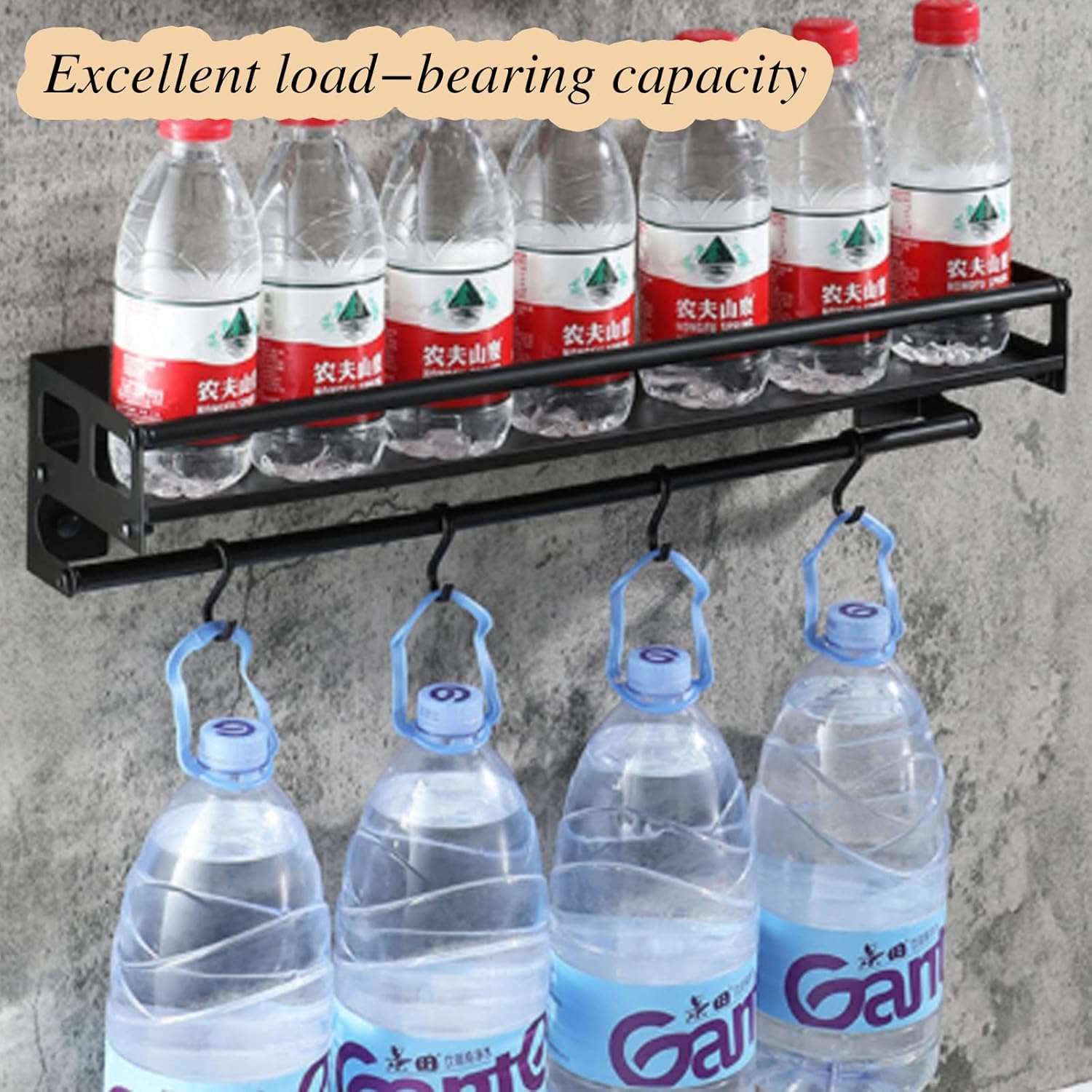 • 【6 Removable Hooks】This spice shelving unit comes with 6 removable hooks that is very convenient for scissors, measuring cups/ spoons, oven mitt, keys, sunglasses, pot holders, etc.