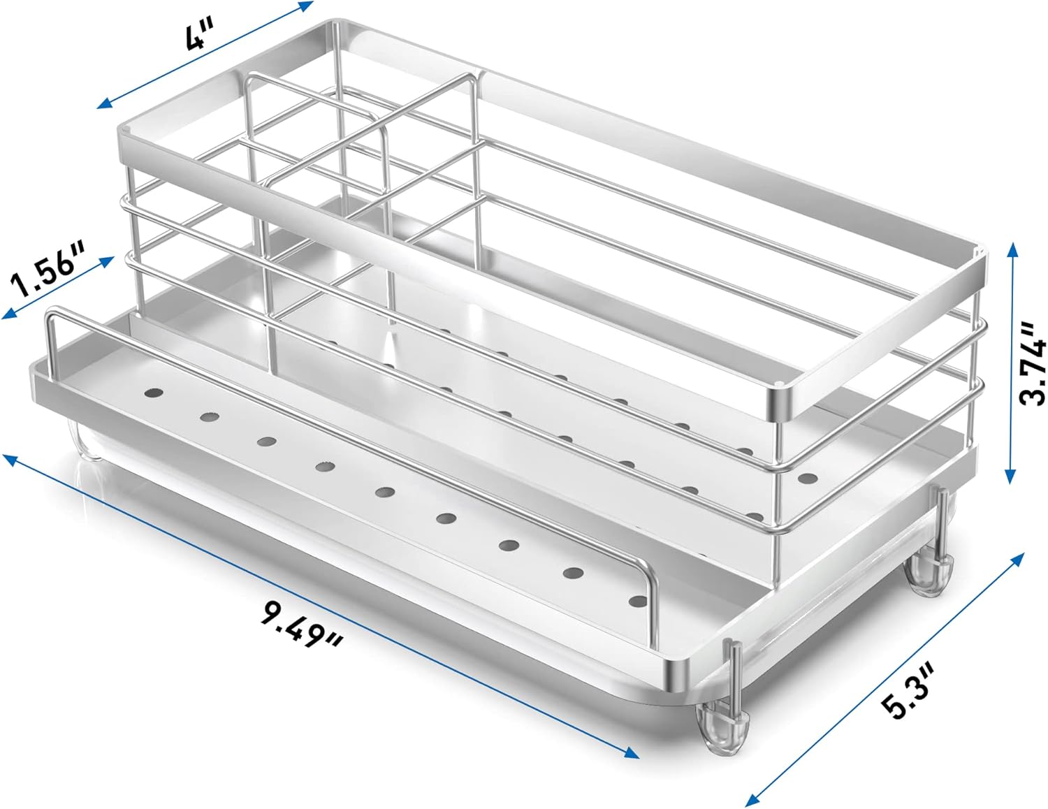 Cisily Stainless Steel Sponge Holder for Kitchen, Sink Caddy Sink Organizer Rack for Kitchen Accessories with Drip Tray, Rustproof and Non-slip, Dish Soap Dispenser Countertop Organizer